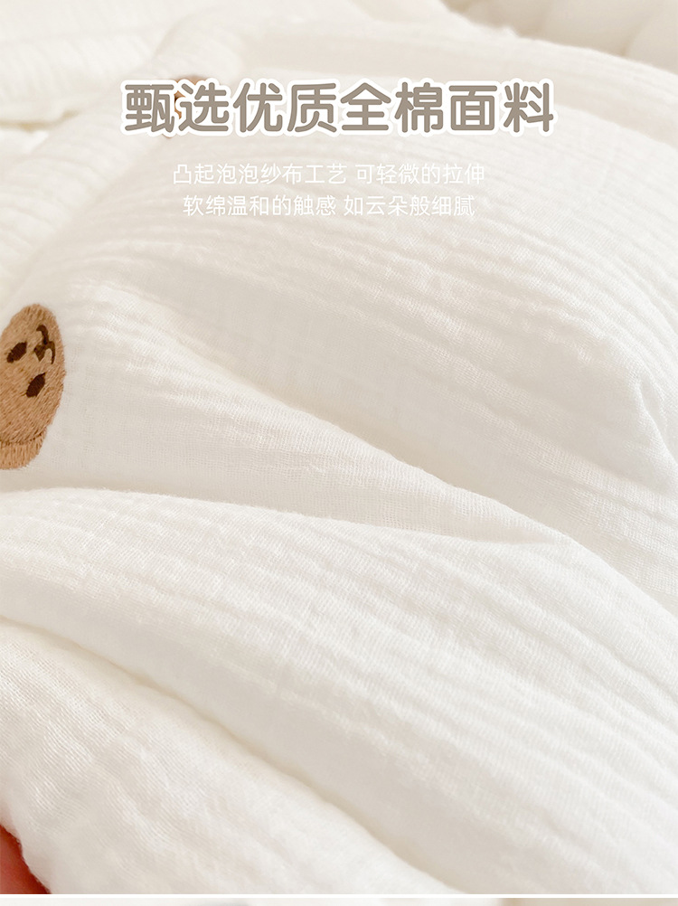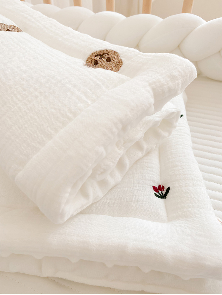 • 크레이프면 자수 곰 + 흰 완두콩 벨벳