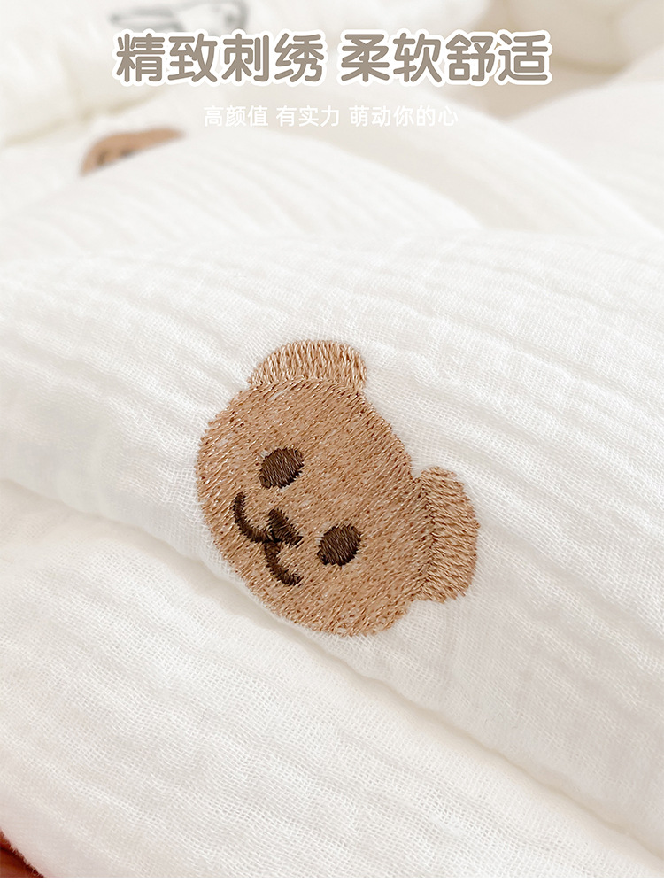 • 크레이프면 자수 곰 + 다크 브라운 완두콩 벨벳