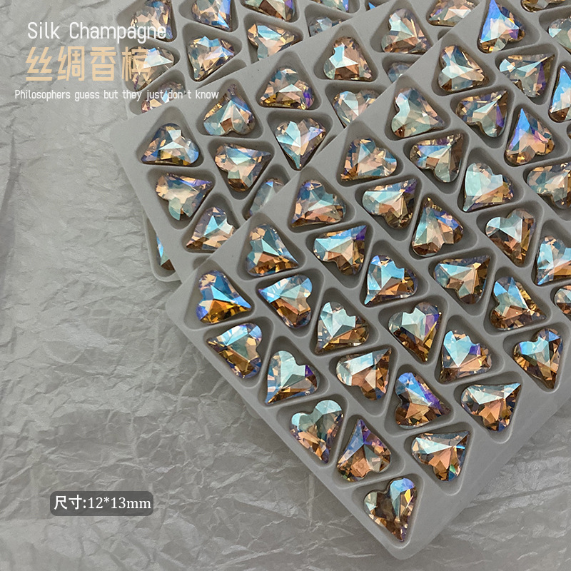 슈퍼 플래시 K9 크리스탈 작은 고구마 높은 실크 샴페인 뾰족한 네일 드릴 도매 비뚤어진 심장 지방 네일 쥬얼리 드릴