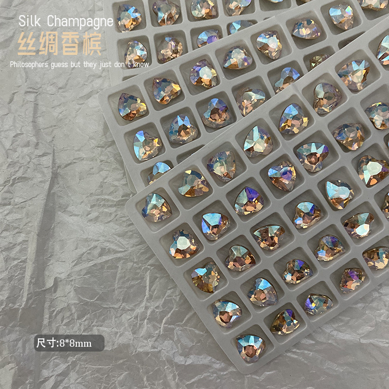 슈퍼 플래시 K9 크리스탈 작은 고구마 높은 실크 샴페인 뾰족한 네일 드릴 도매 비뚤어진 심장 지방 네일 쥬얼리 드릴스토어 가기