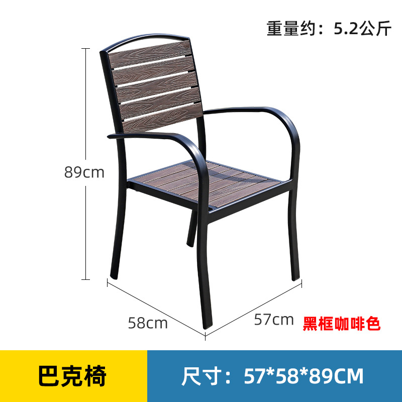 야외 테이블과 의자 조합 레저 카페 밀크 티 샵 야외 발코니 안뜰 테라스 정원 부식 방지 플라스틱 나무 긴 테이블