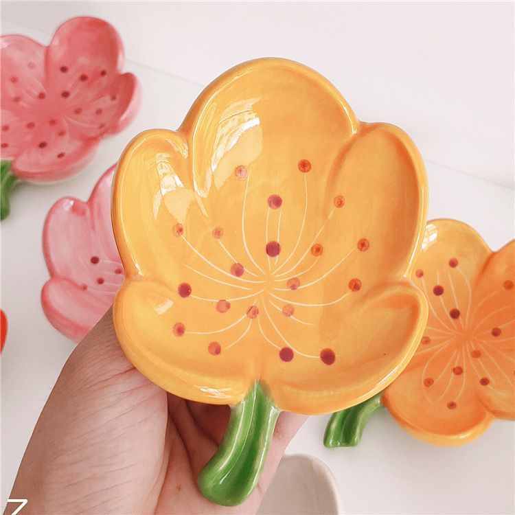 세라믹 비누 상자 꽃 창조적 인 호텔 욕실 고급 배수 비누 접시 가정용 복숭아 꽃 튤립 트레이스토어 가기