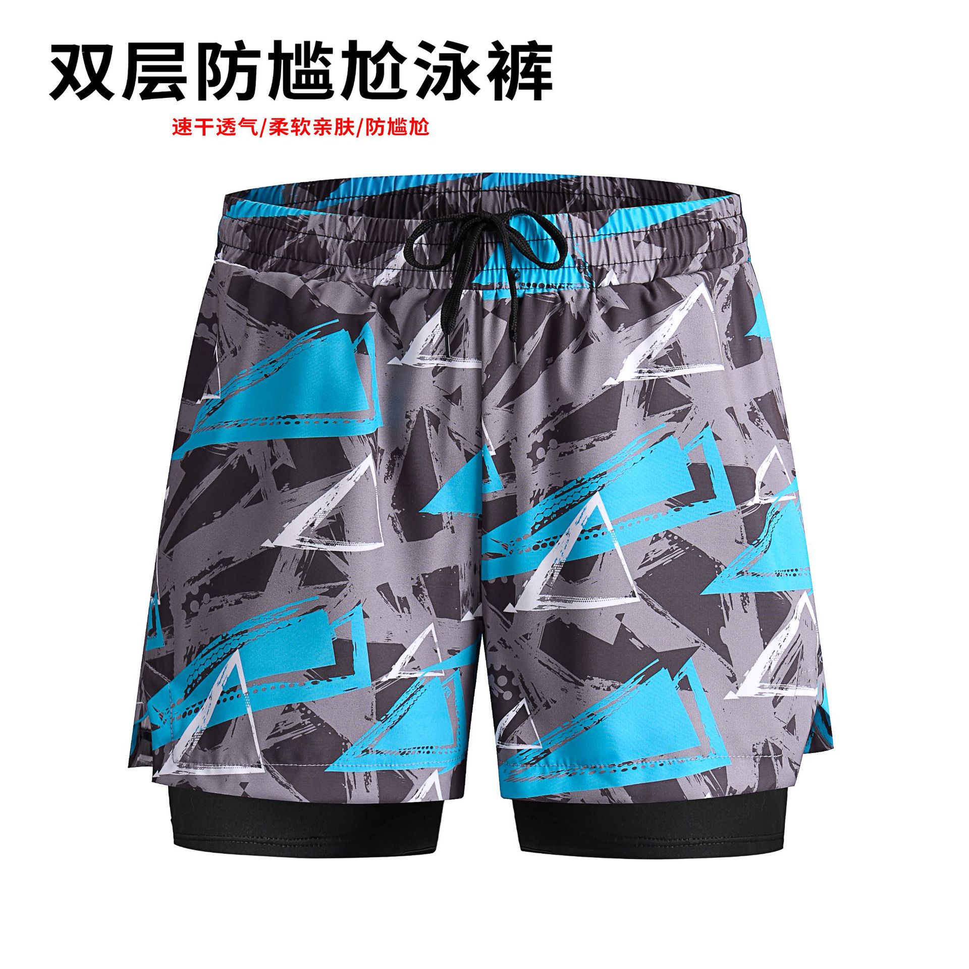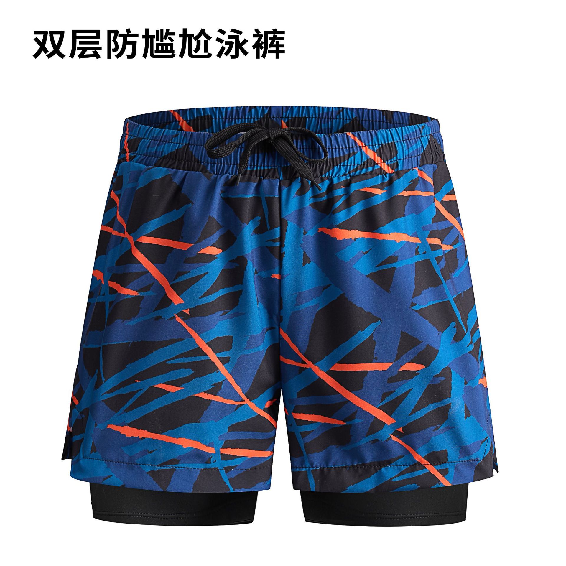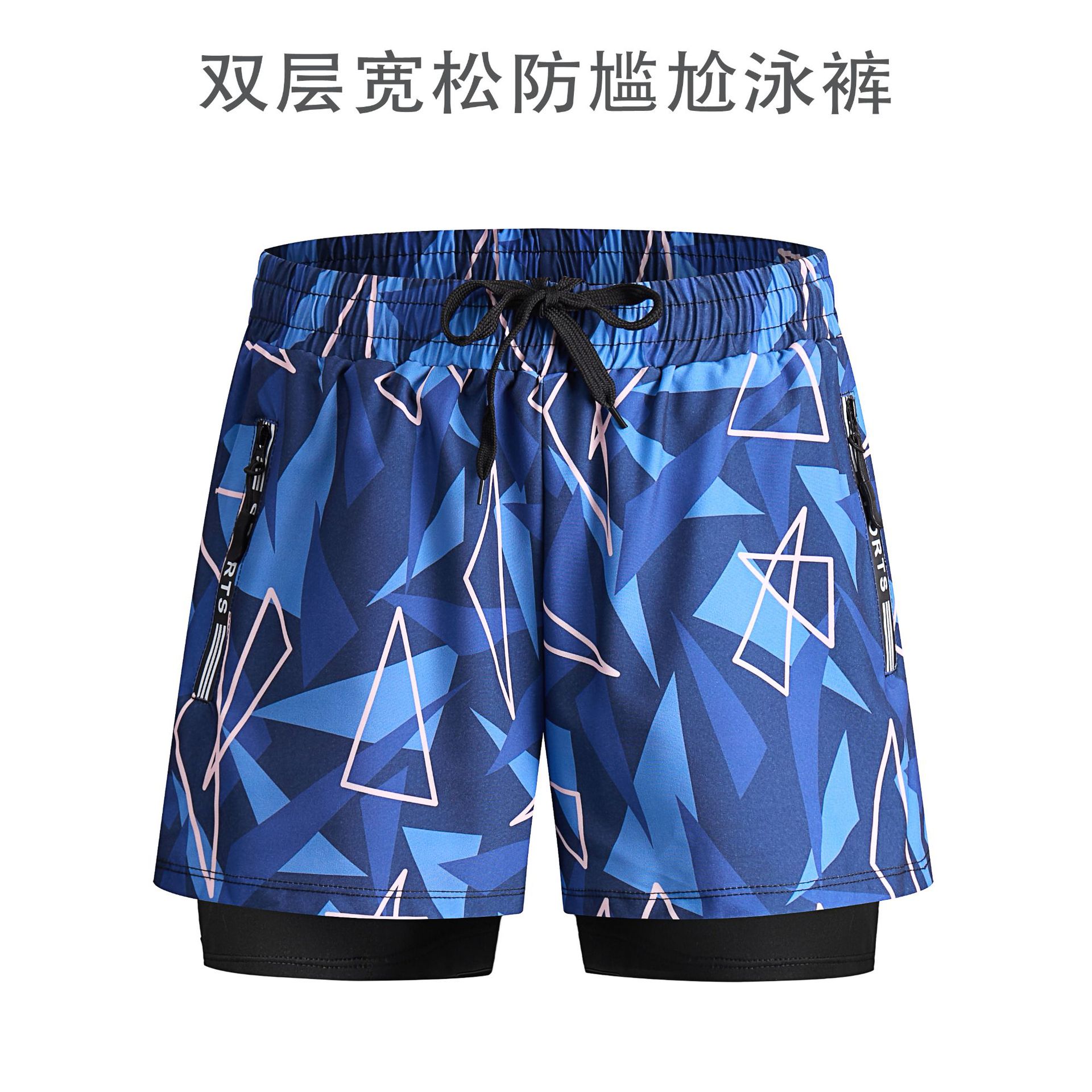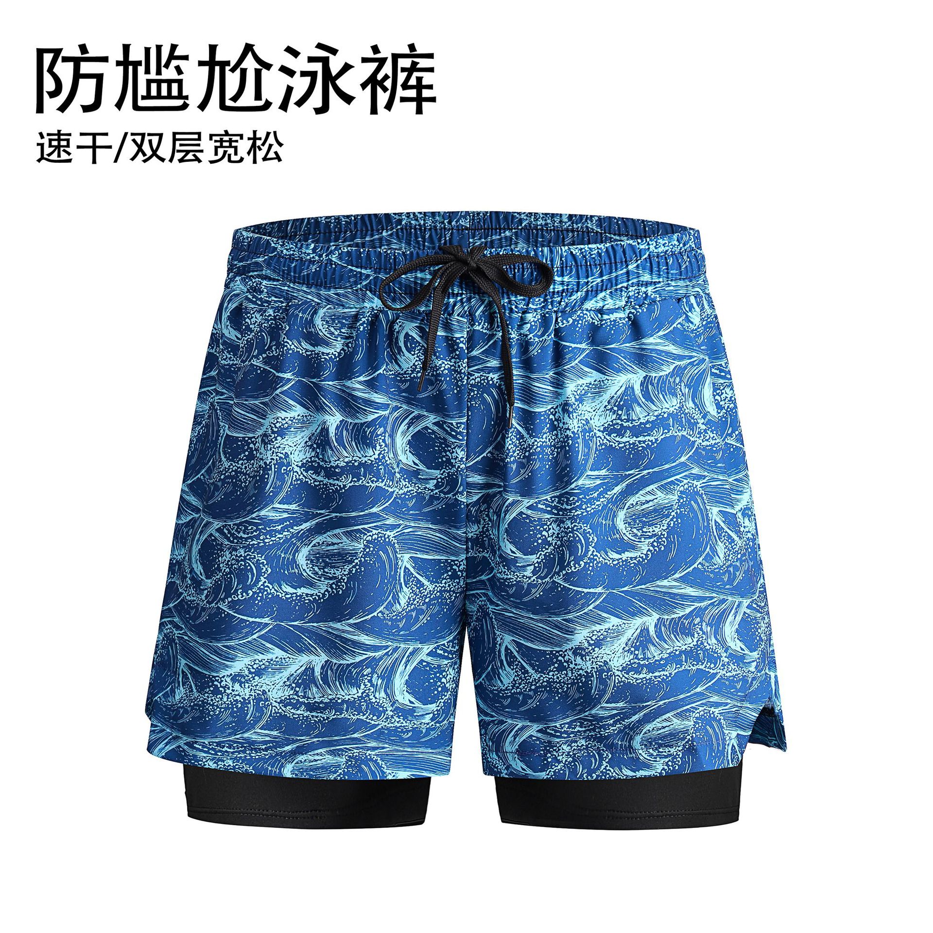 남자의 안티 당황 수영 트렁크 더블 레이어 속건 수영복 세트 온천 전문 수영 줄 소년 느슨한 수영복스토어 가기