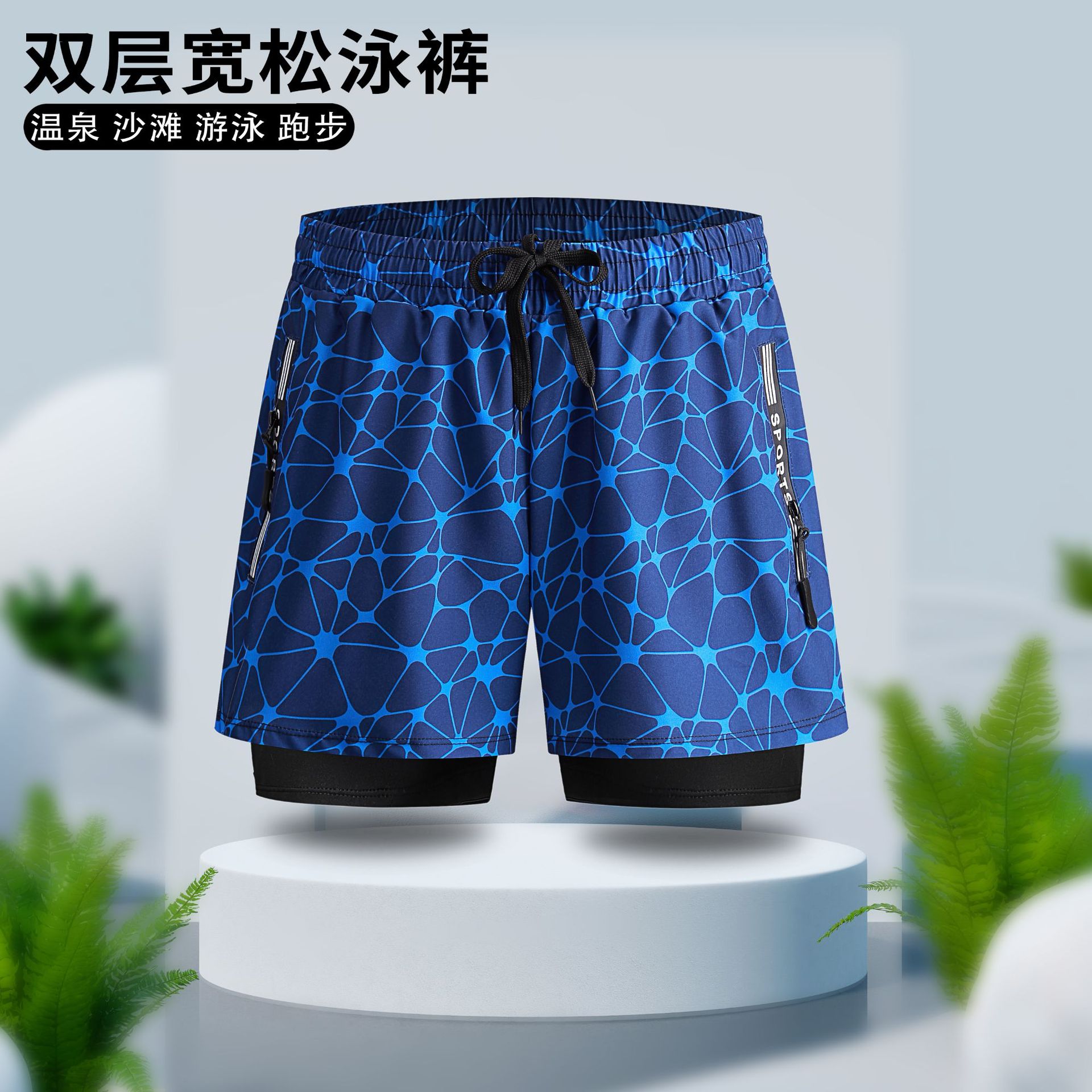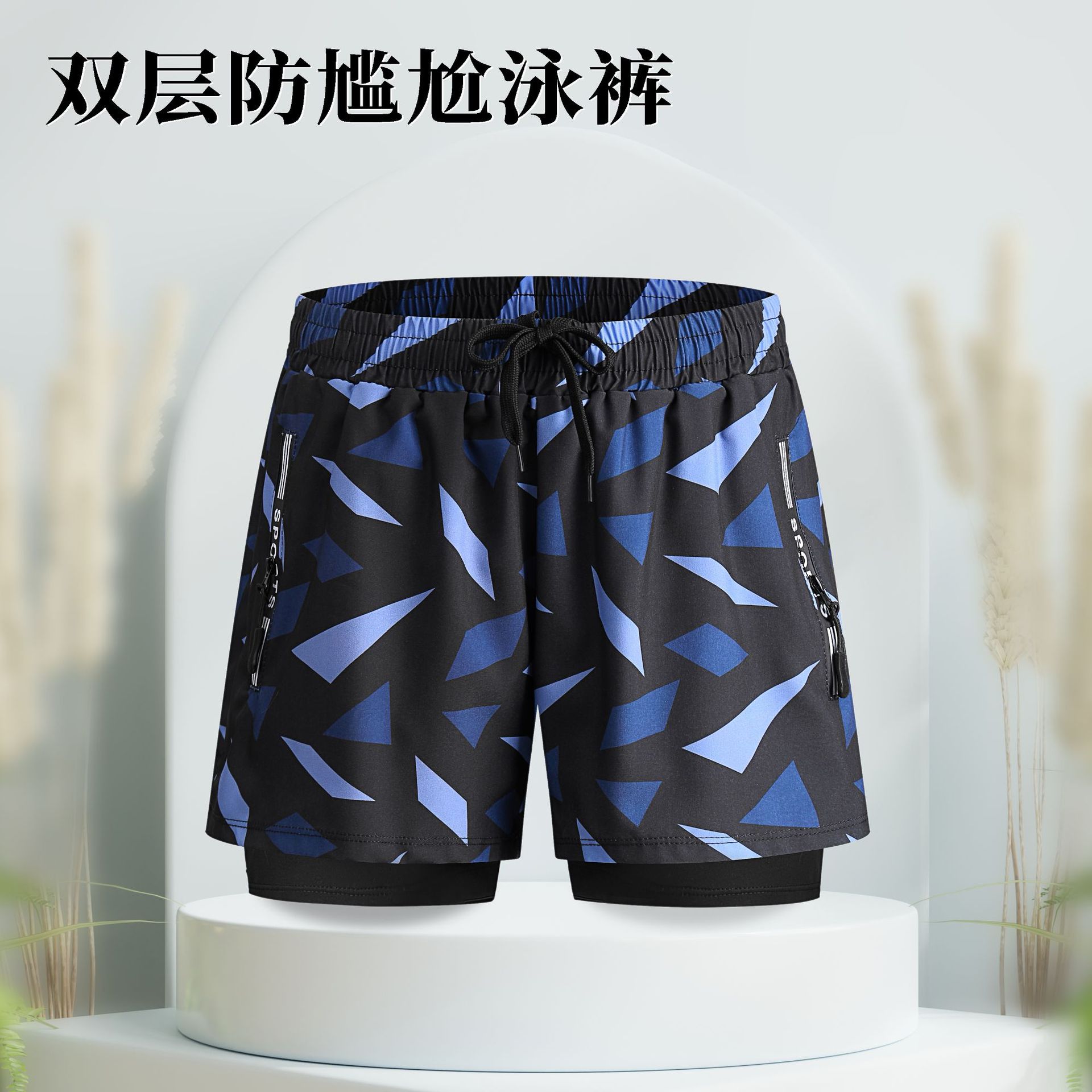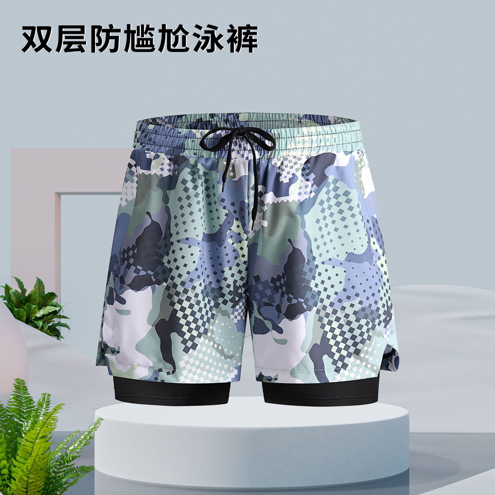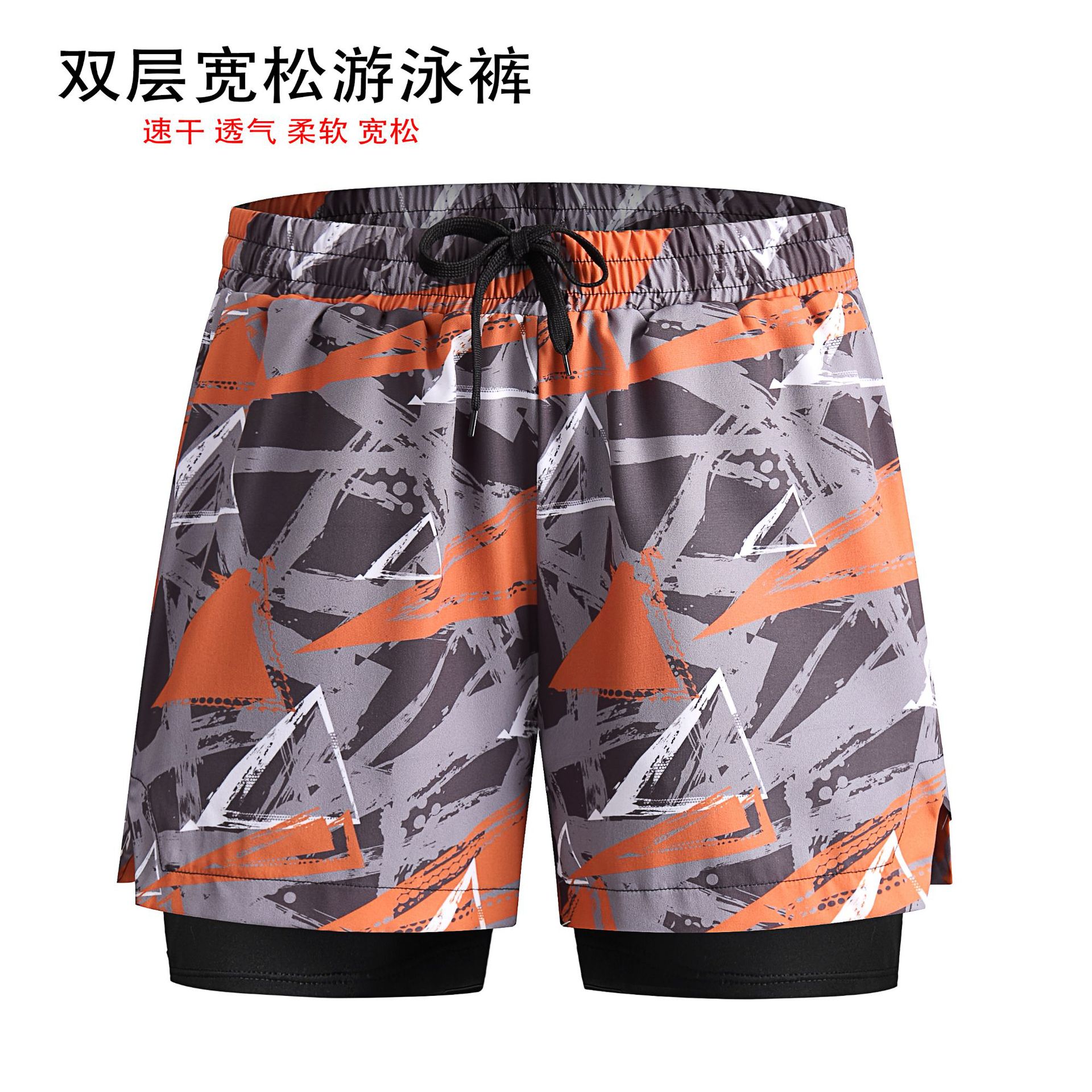 남자의 안티 당황 수영 트렁크 더블 레이어 속건 수영복 세트 온천 전문 수영 줄 소년 느슨한 수영복스토어 가기