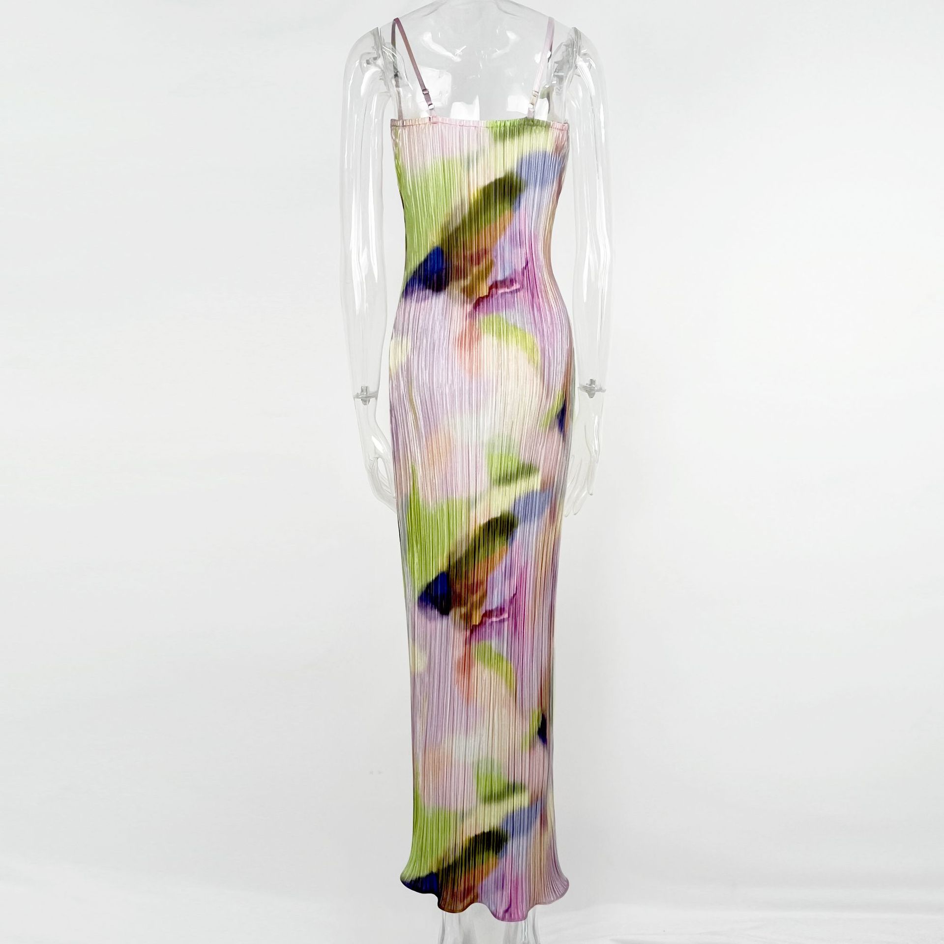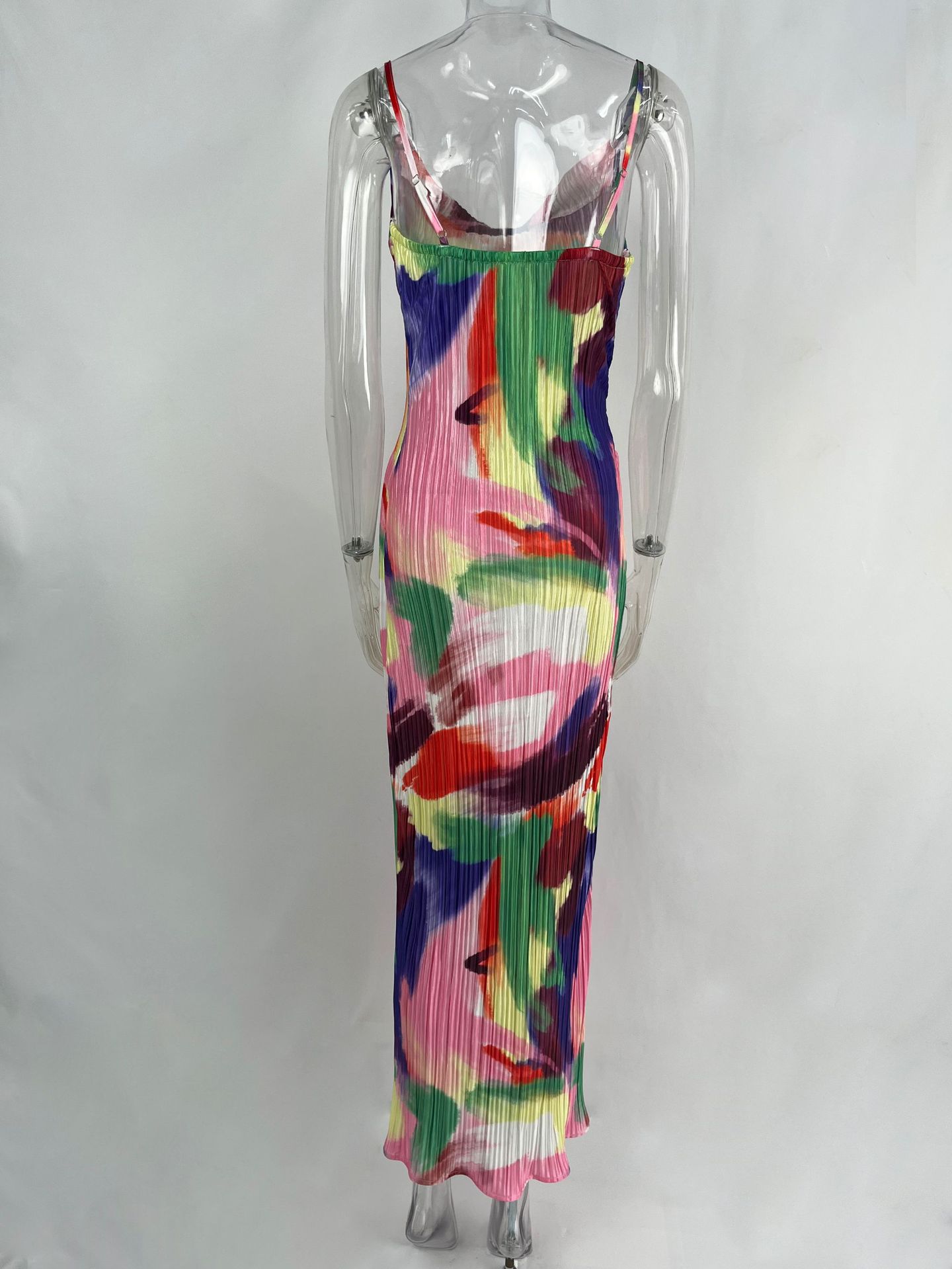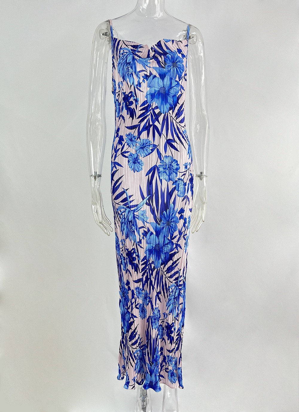 2023 유럽과 미국 국경 러시아 아마존 폭발 인쇄 주름 슬림 슬링 원피스 HY009