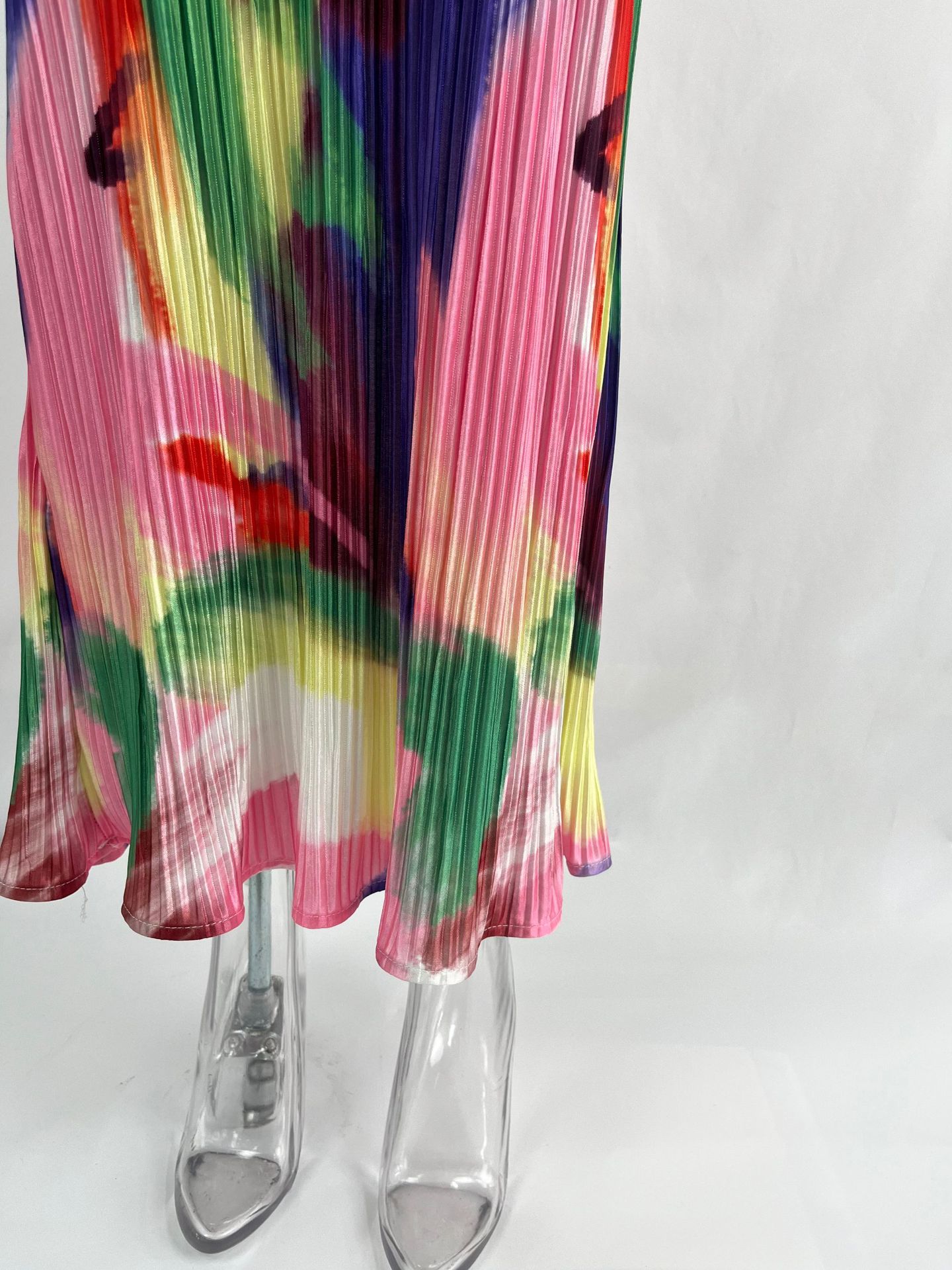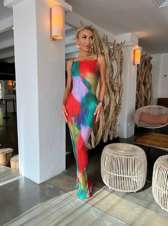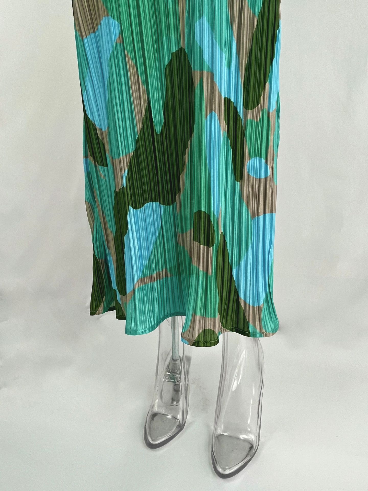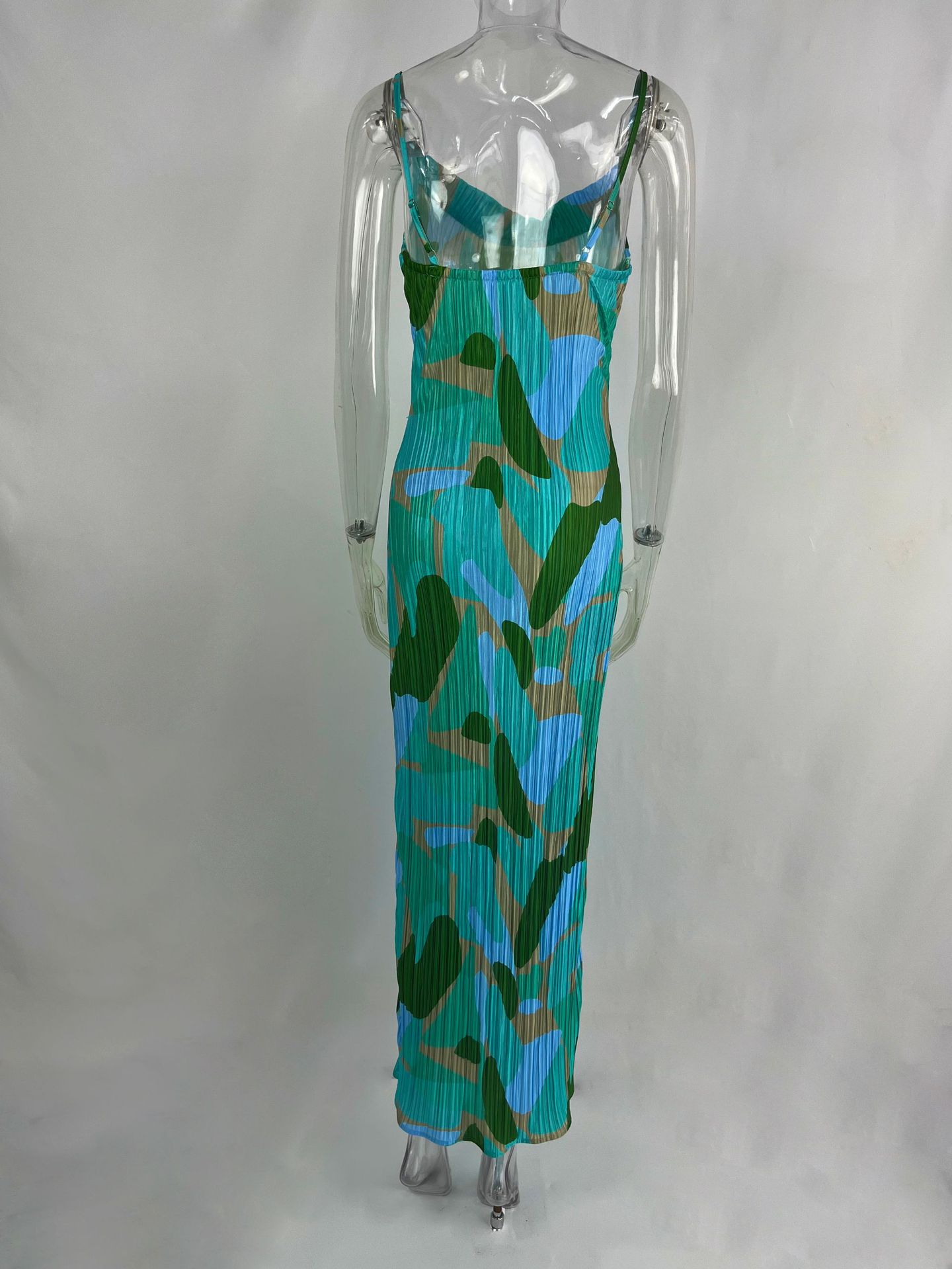 2023 유럽과 미국 국경 러시아 아마존 폭발 인쇄 주름 슬림 슬링 원피스 HY009