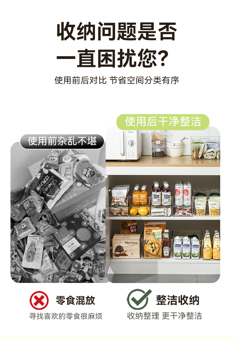 투명 보관 상자 데스크탑 스킨 케어 제품 주방 캐비닛 서랍 냉장고 주최자 아크릴 스낵 보관 바구니스토어 가기
