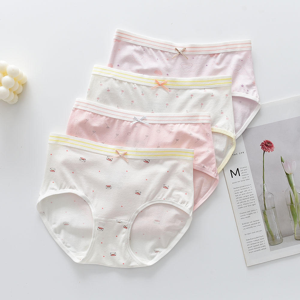 봄과 여름 새로운 소녀 브리프 큰 어린이 학생 허리 브리프 빗질면 속옷 소녀 만화 반바지스토어 가기
