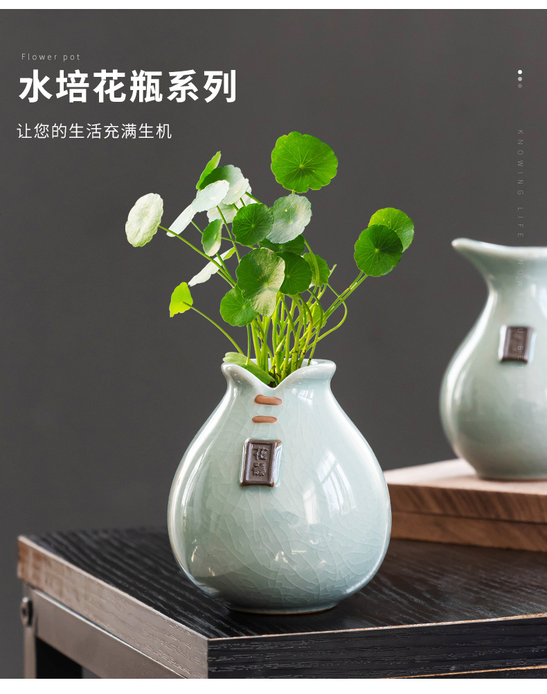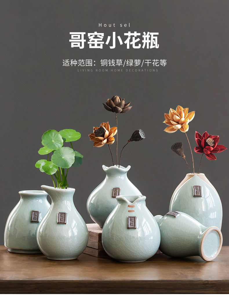 크리 에이 티브 게 가마 장식 꽃병 인공 꽃 미니 병 장식품 세라믹 꽃병 중국 스타일 구리 돈 잔디 수경 식물스토어 가기