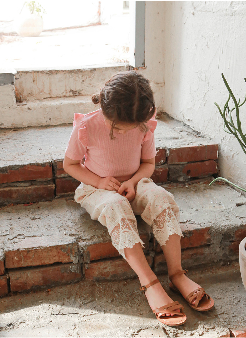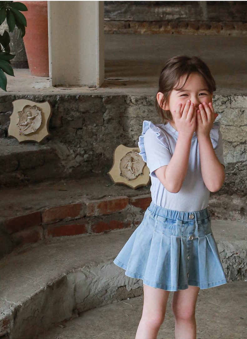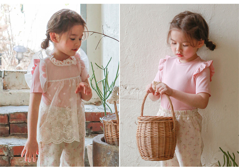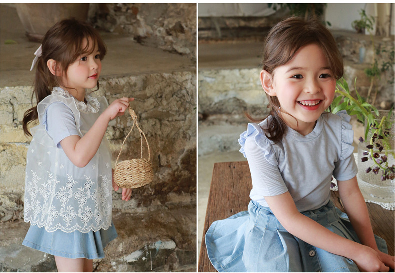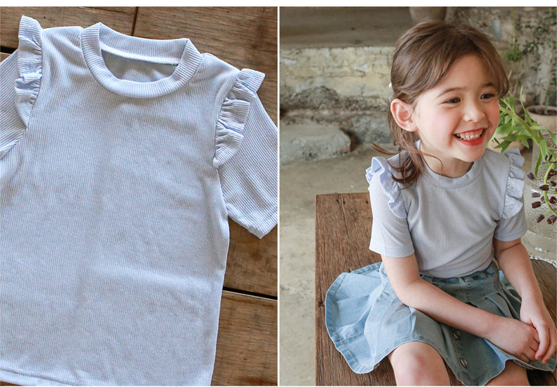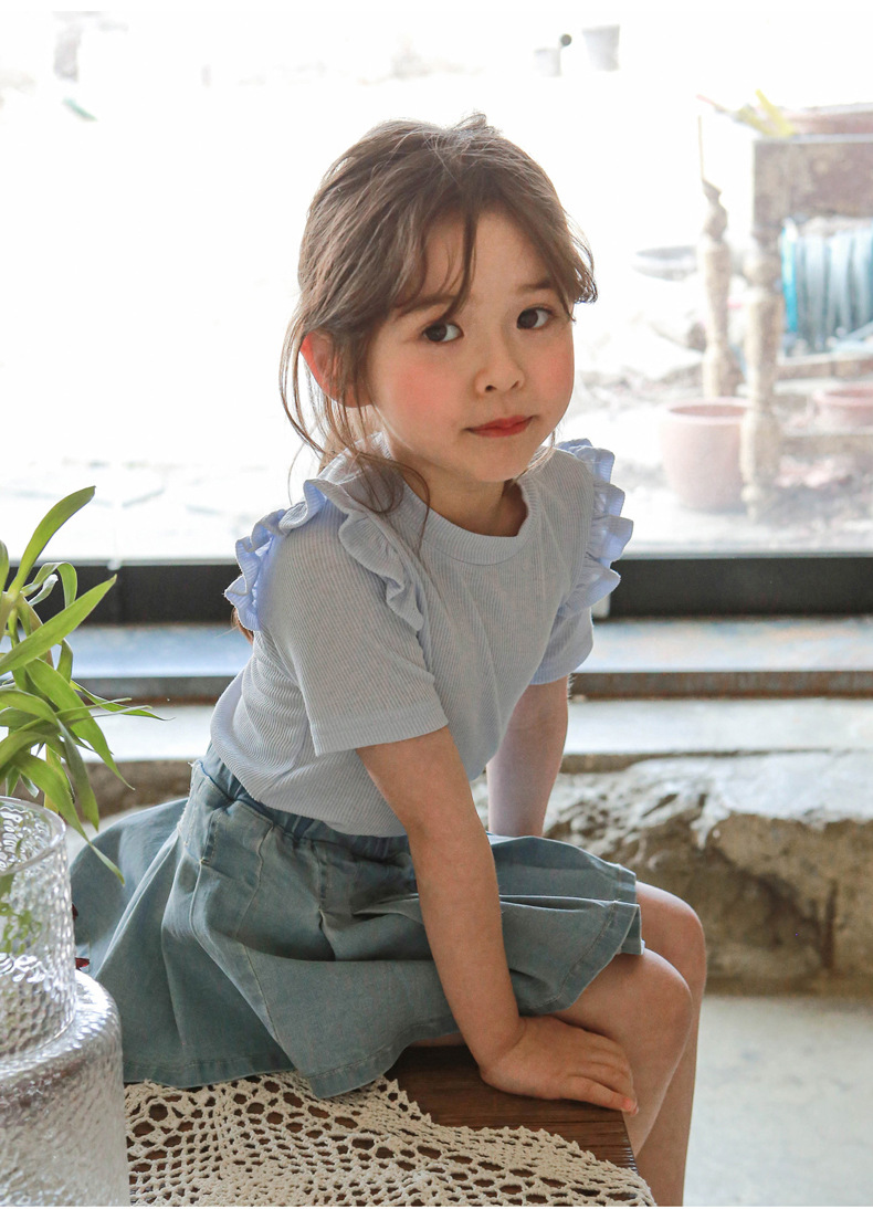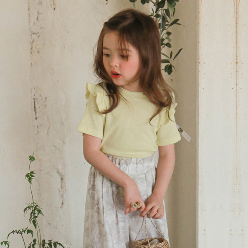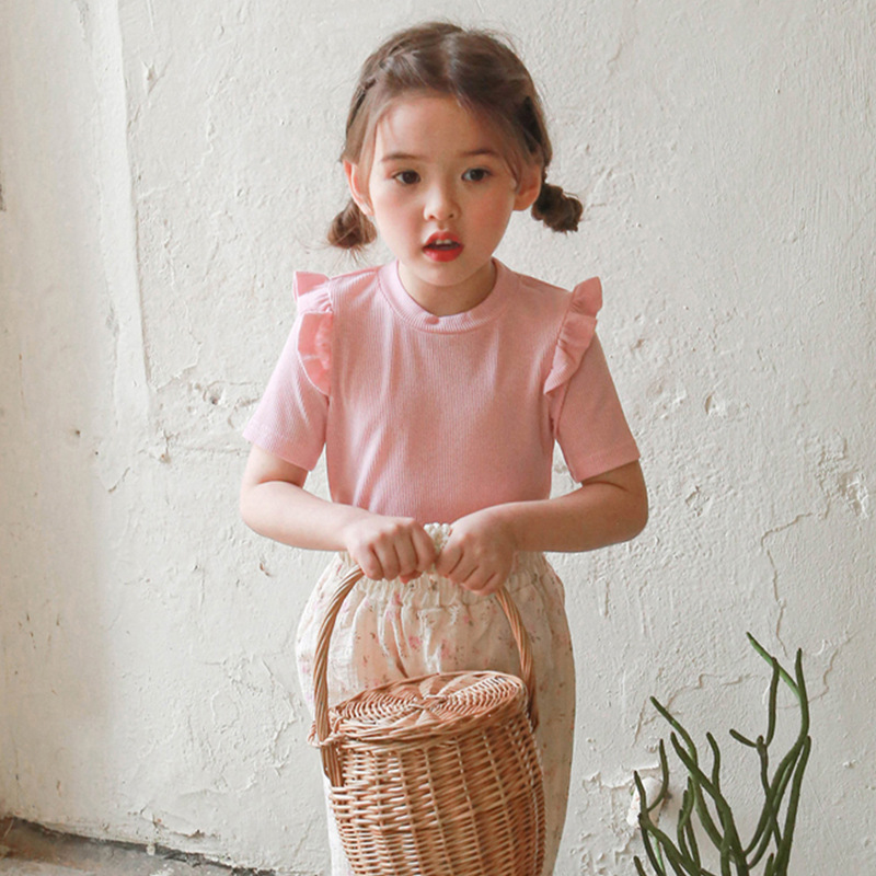 아기 소녀 반팔 티셔츠 여름 순수 코튼 바닥 셔츠 3-10 세 어린이 솔리드 컬러 다목적 티셔츠 공장 직접 판매 국경스토어 가기