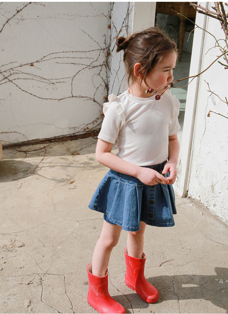 아기 소녀 반팔 티셔츠 여름 순수 코튼 바닥 셔츠 3-10 세 어린이 솔리드 컬러 다목적 티셔츠 공장 직접 판매 국경