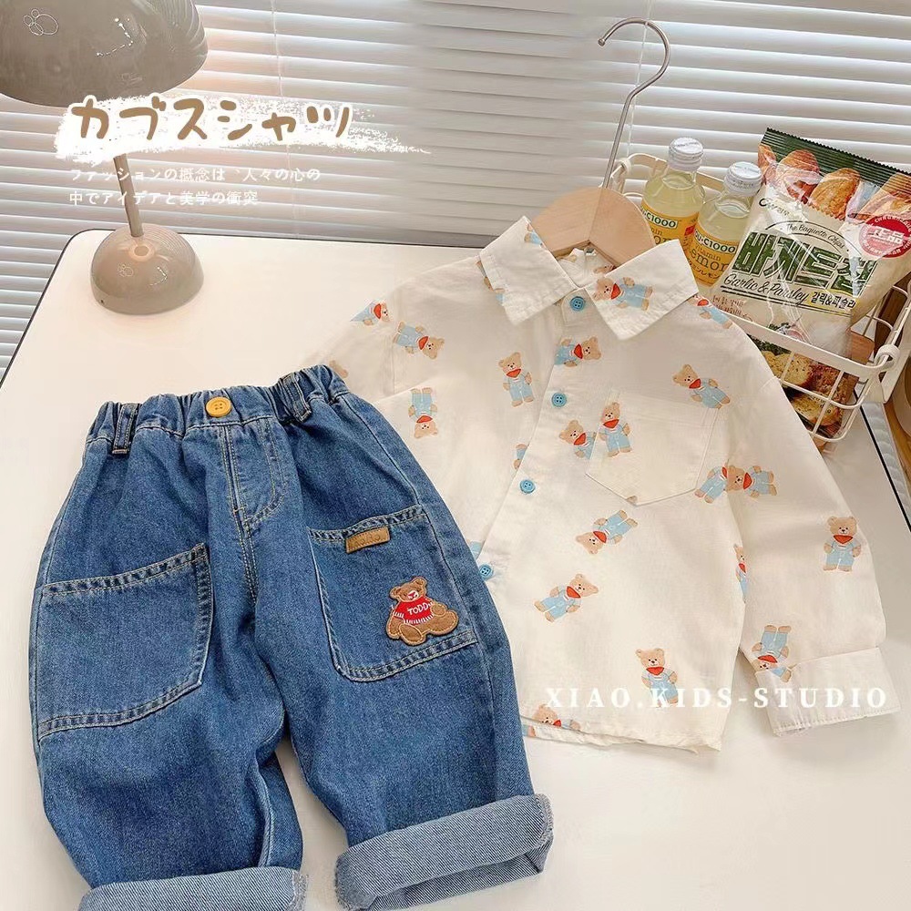 아동용 긴팔 셔츠 2023 봄 새로운 한국식 소년 소녀 만화 탑 중소 아동용 긴팔 셔츠 트렌디스토어 가기