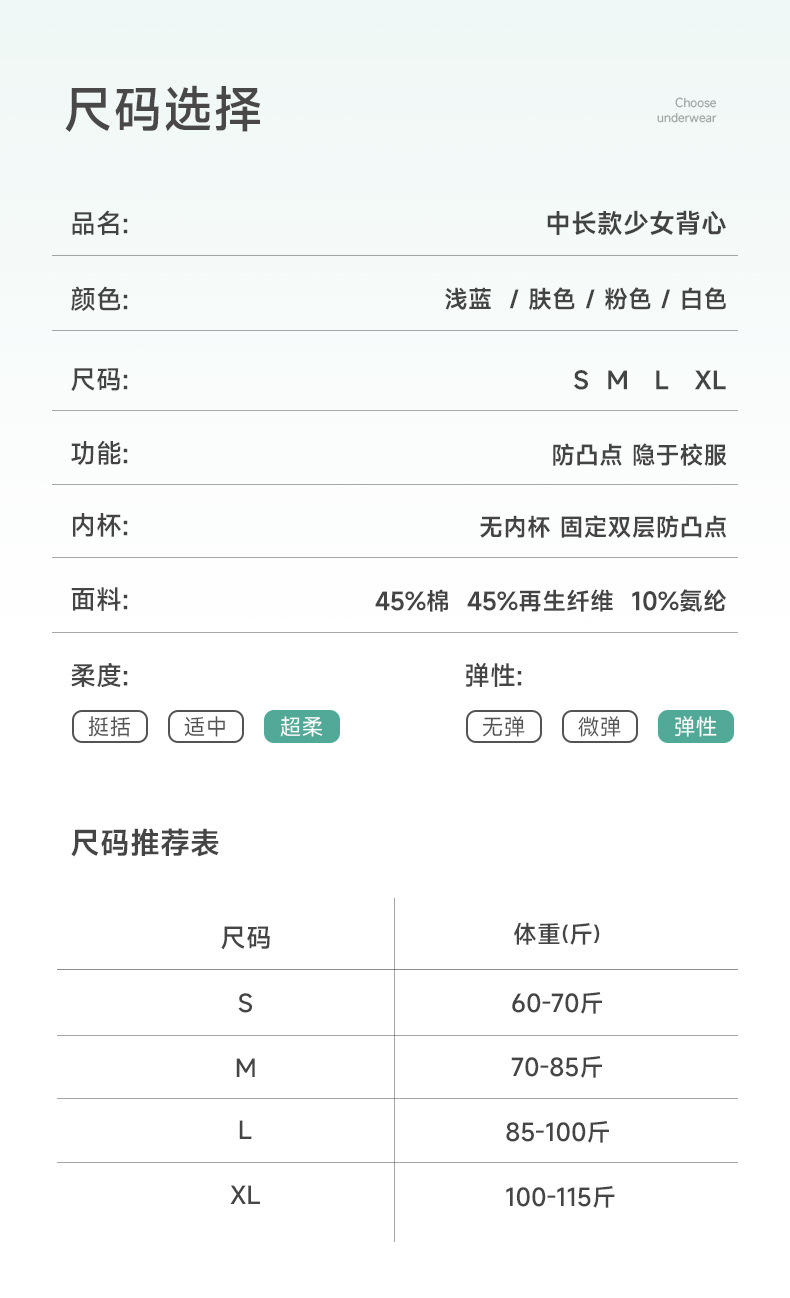 加长版 9~12岁发育期少女背心无痕莫代尔舒适透气中小学生背心内搭打底