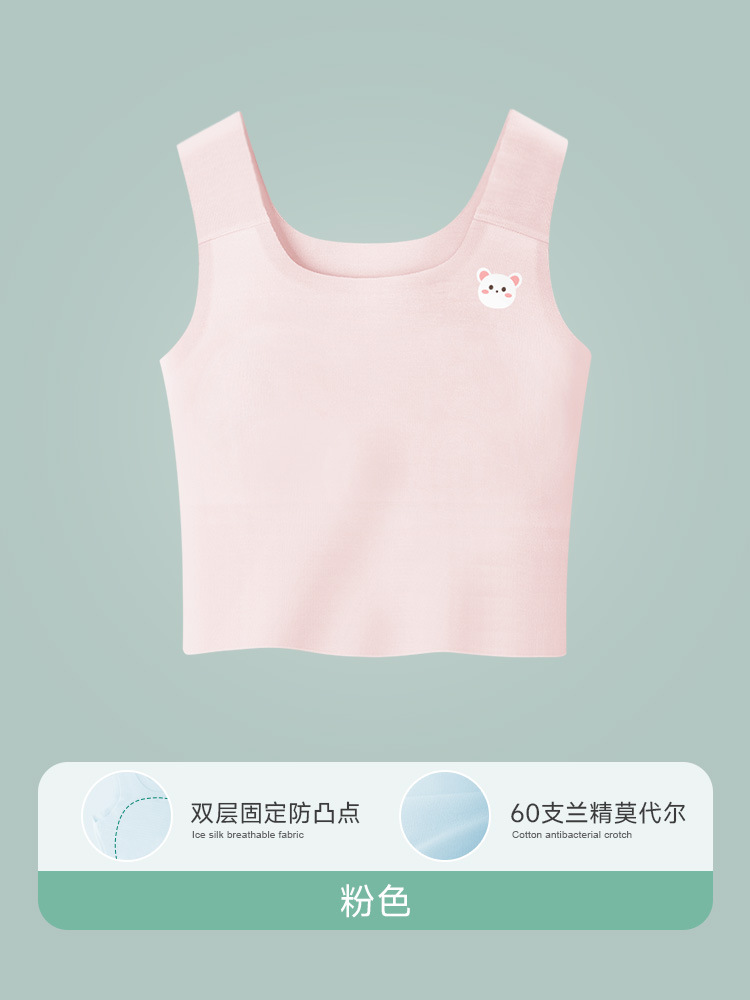 卡通图案发育期少女背心防凸点学生女孩内搭打底中长款背心9~12岁棉质