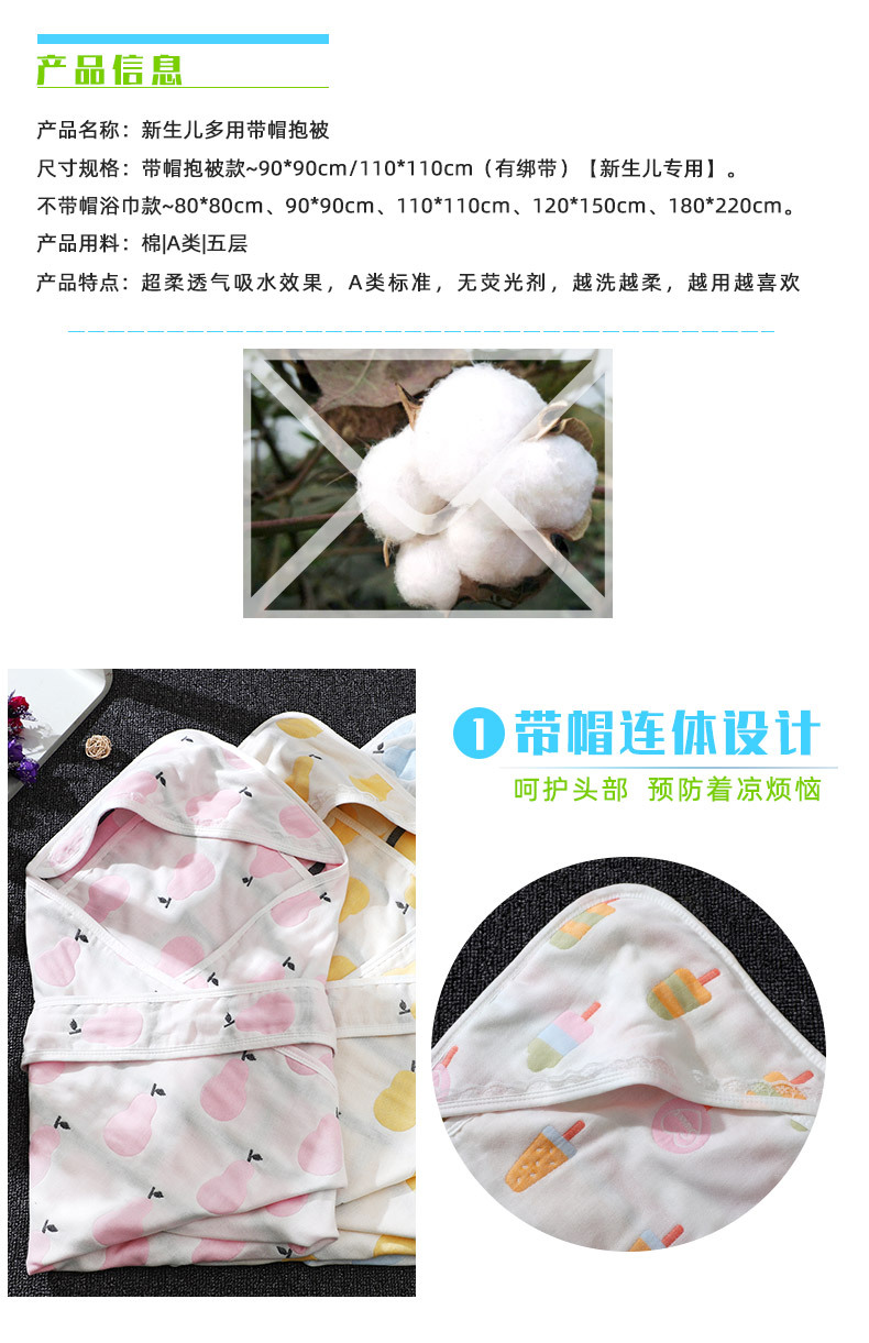 아기 이불 여름 면화 4 계절 면화 5 층 거즈 얇은 신생아 후드 타월 싱글 목욕 타월