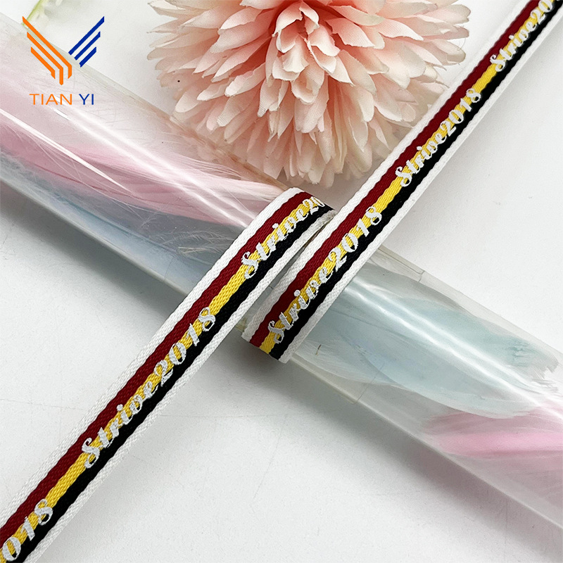1cm 재고 컬러 편지 인쇄 리본 스트라이프 티셔츠 아동복 바지 가장자리 포장 스트립 홈 섬유 신발 및 모자 의류 액세서리
