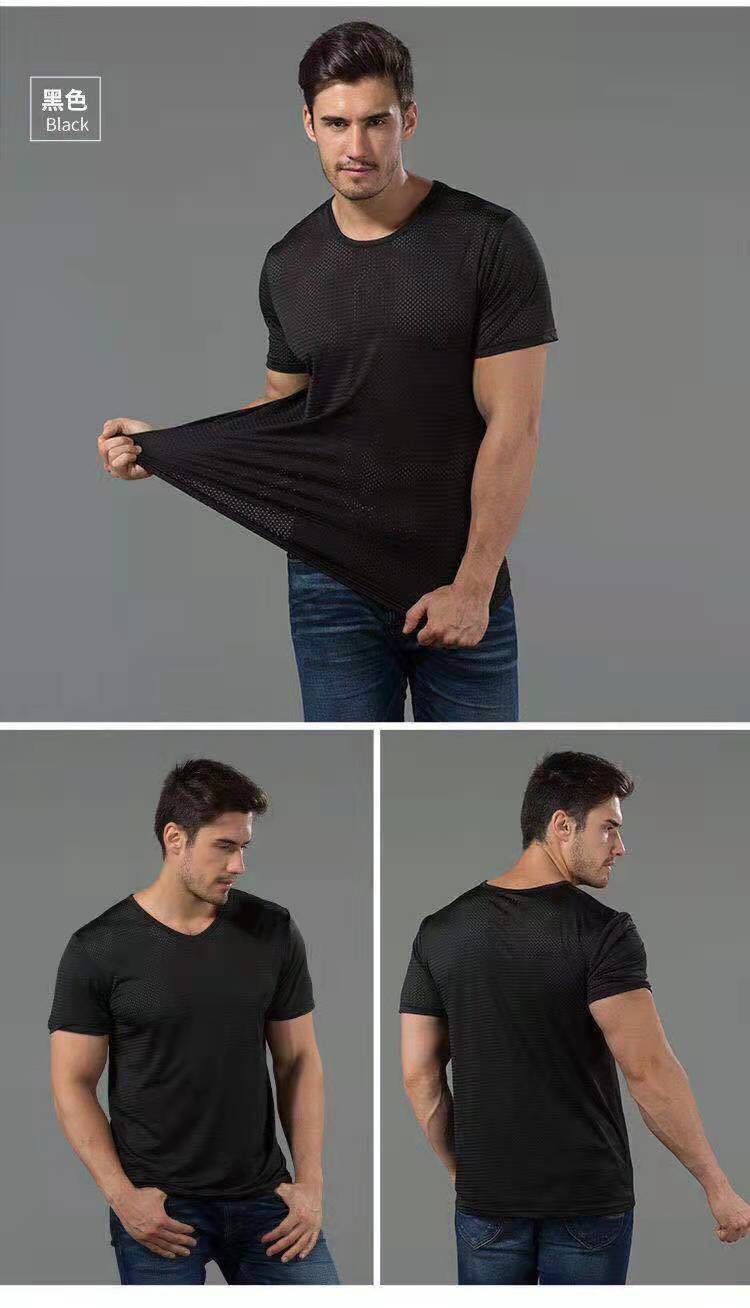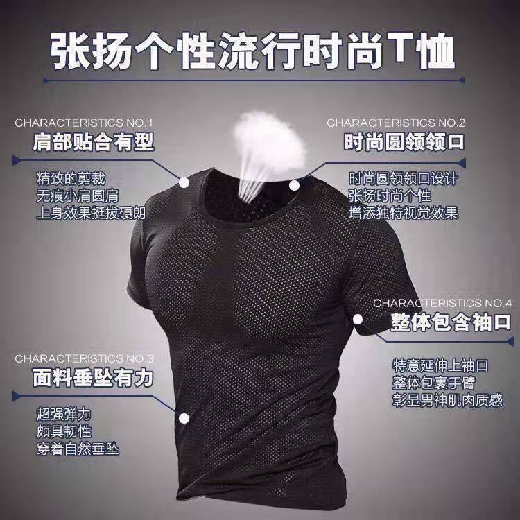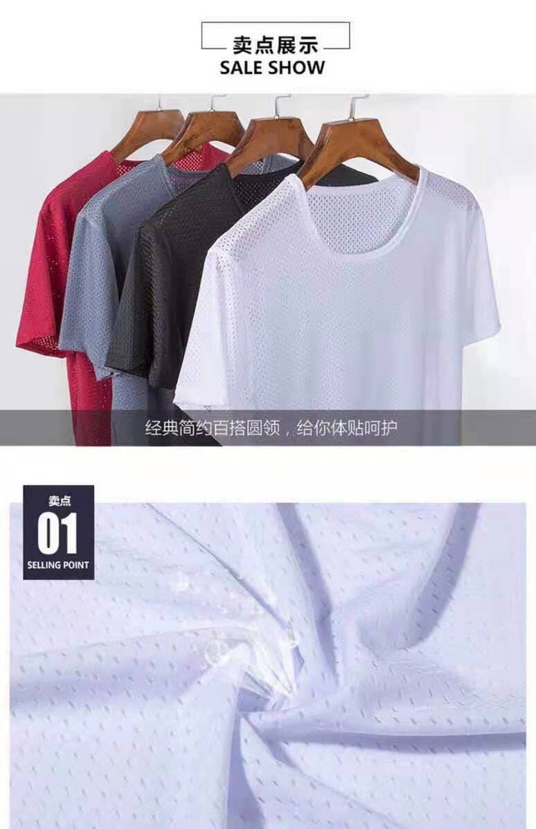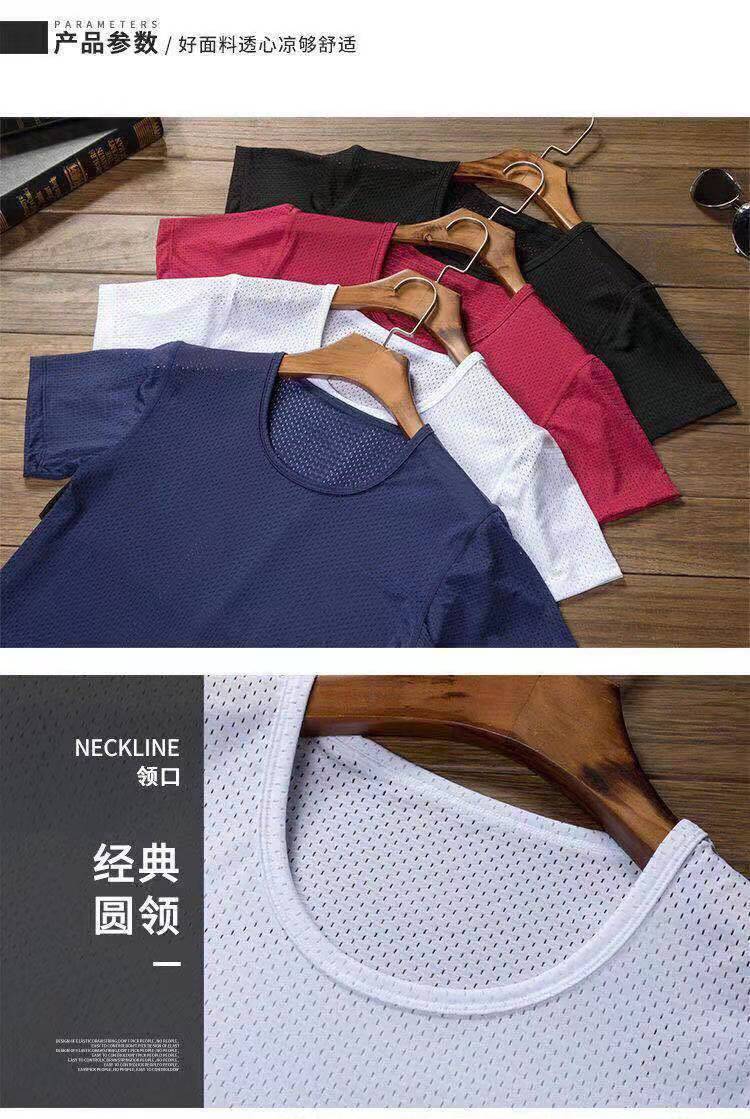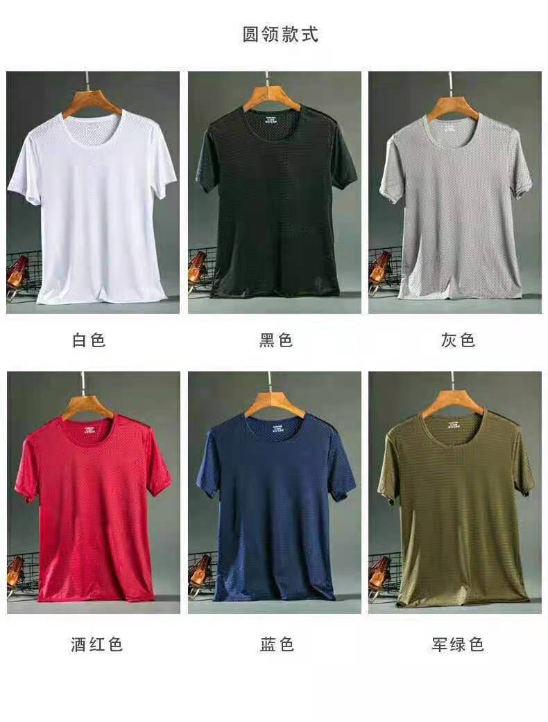 아이스 실크 반팔 티셔츠 남성용 여름 얇은 속건 에어컨 메쉬 통기성 중공 플러스 사이즈 베이스 셔츠 트렌디스토어 가기