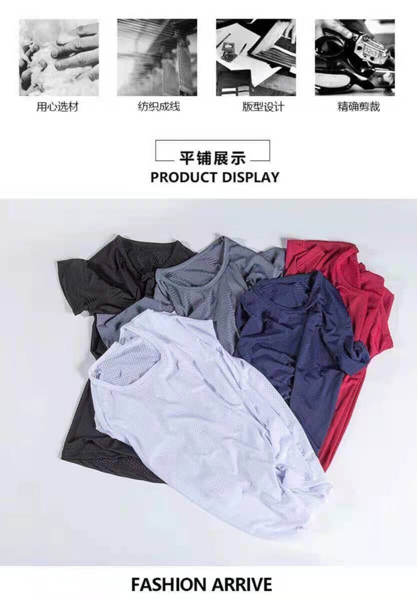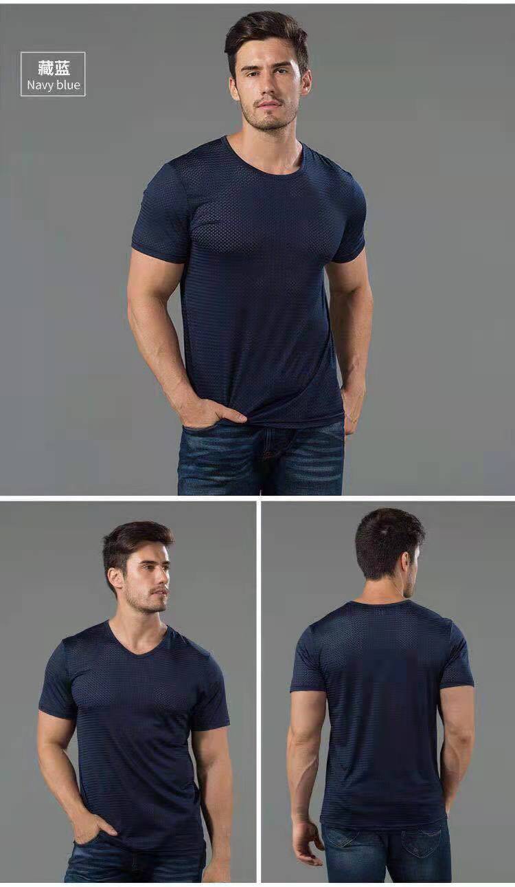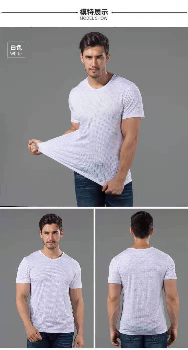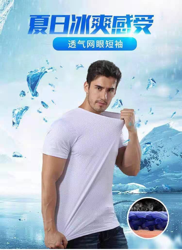 아이스 실크 반팔 티셔츠 남성용 여름 얇은 속건 에어컨 메쉬 통기성 중공 플러스 사이즈 베이스 셔츠 트렌디스토어 가기