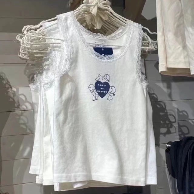 여름 새로운 레이스 에지 엔젤 프린트 슬림핏 짧은 탑 bm 스타일 조끼 슬링스토어 가기