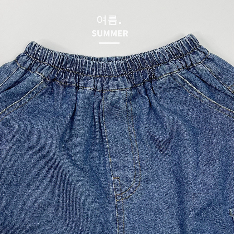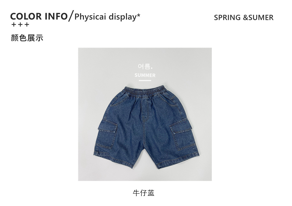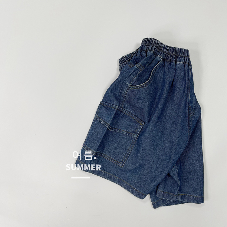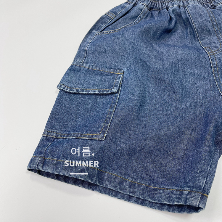 Kaqi Huangzi 한국식 어린이 툴링 청바지 여름 새로운 중소 어린이 포켓 툴링 바지 반 길이 바지 면