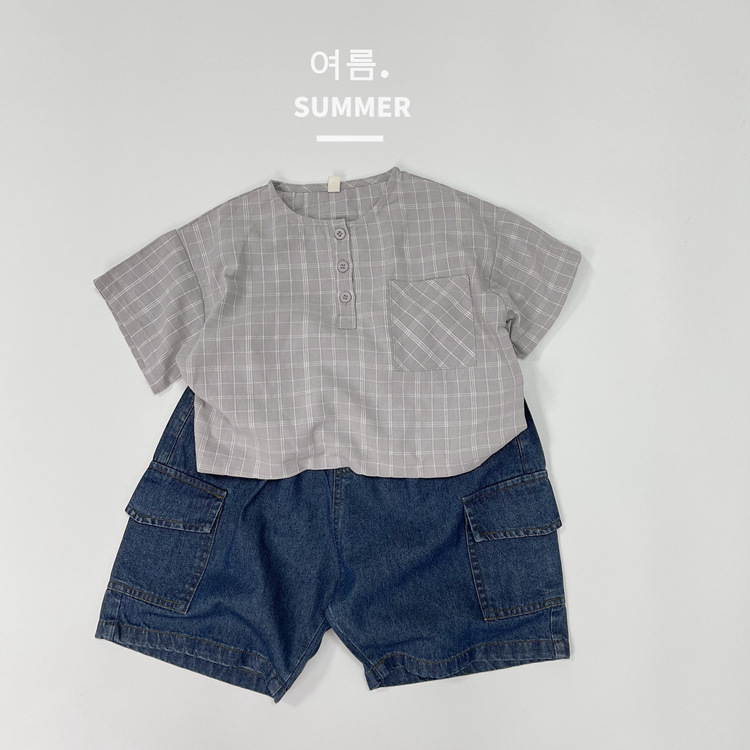 Kaqi Huangzi 한국식 어린이 툴링 청바지 여름 새로운 중소 어린이 포켓 툴링 바지 반 길이 바지 면스토어 가기