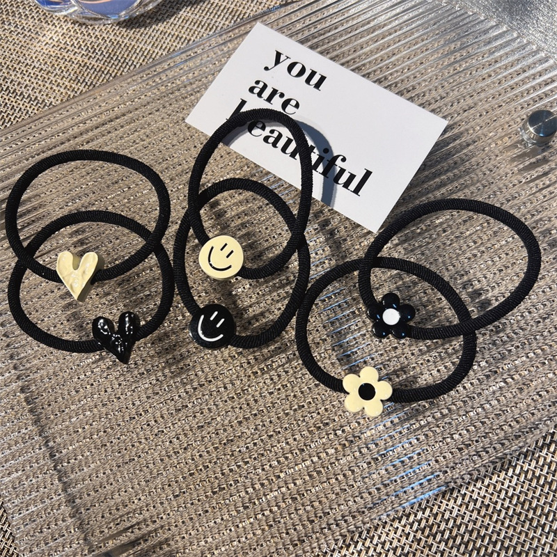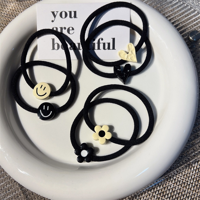 한국 우아한 높은 탄성 내구성 헤어 로프 귀여운 만화 스타일 스마일 복숭아 심장 꽃 간단한 기본 헤어 로프 헤어 액세서리