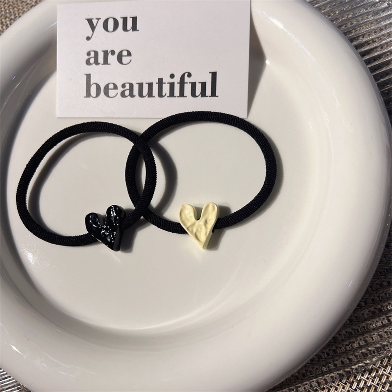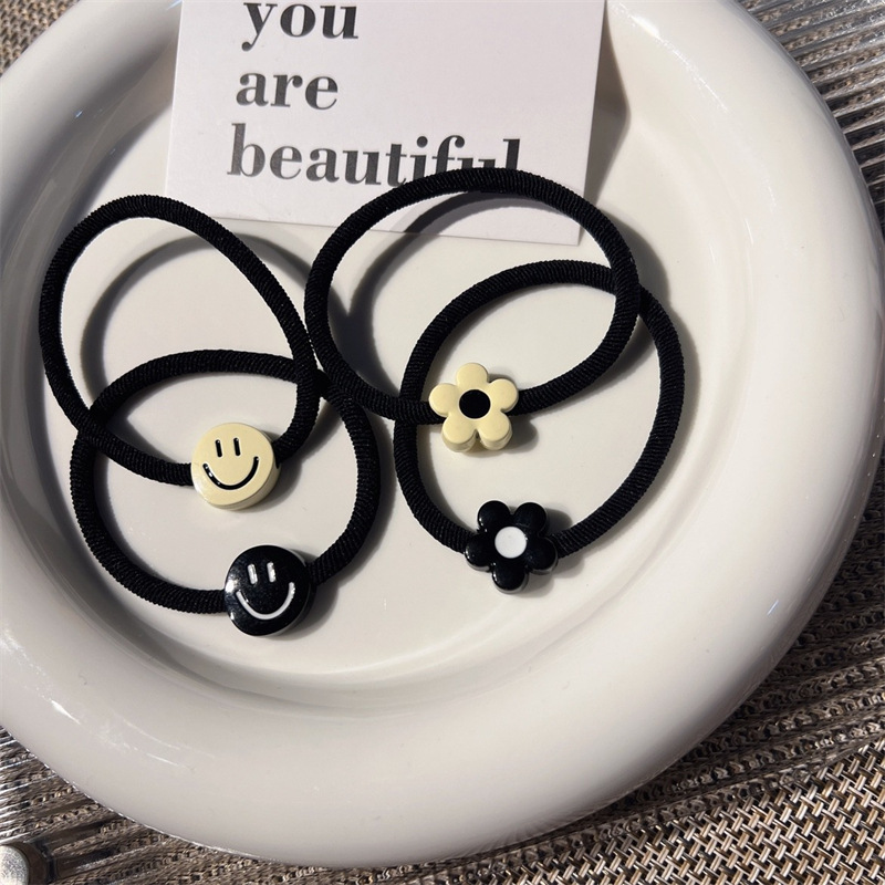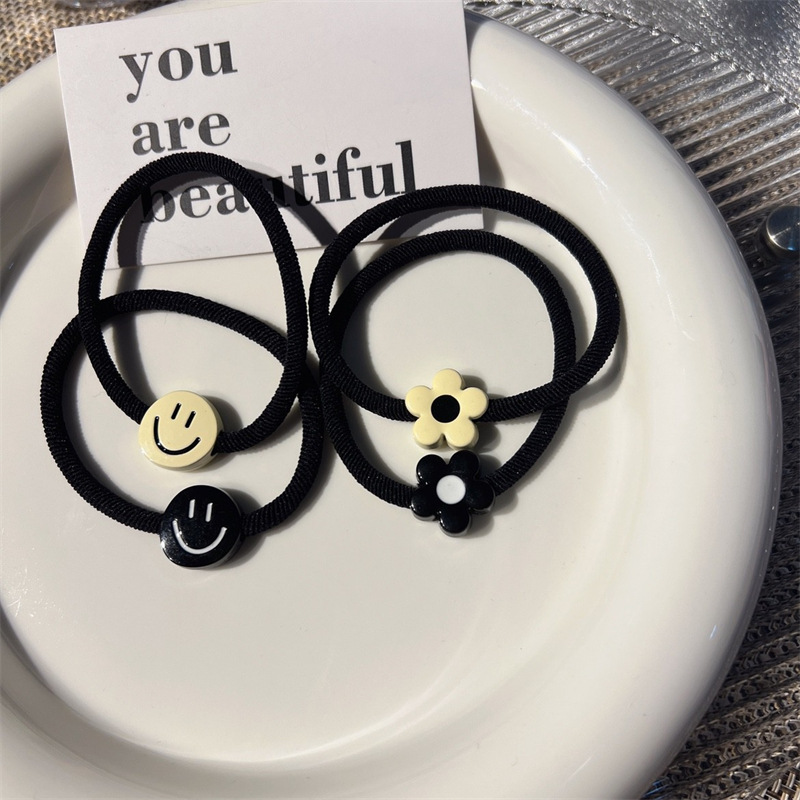 한국 우아한 높은 탄성 내구성 헤어 로프 귀여운 만화 스타일 스마일 복숭아 심장 꽃 간단한 기본 헤어 로프 헤어 액세서리스토어 가기