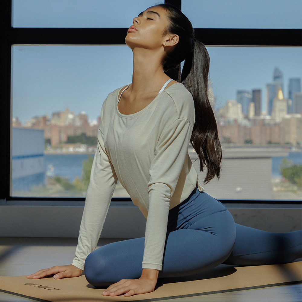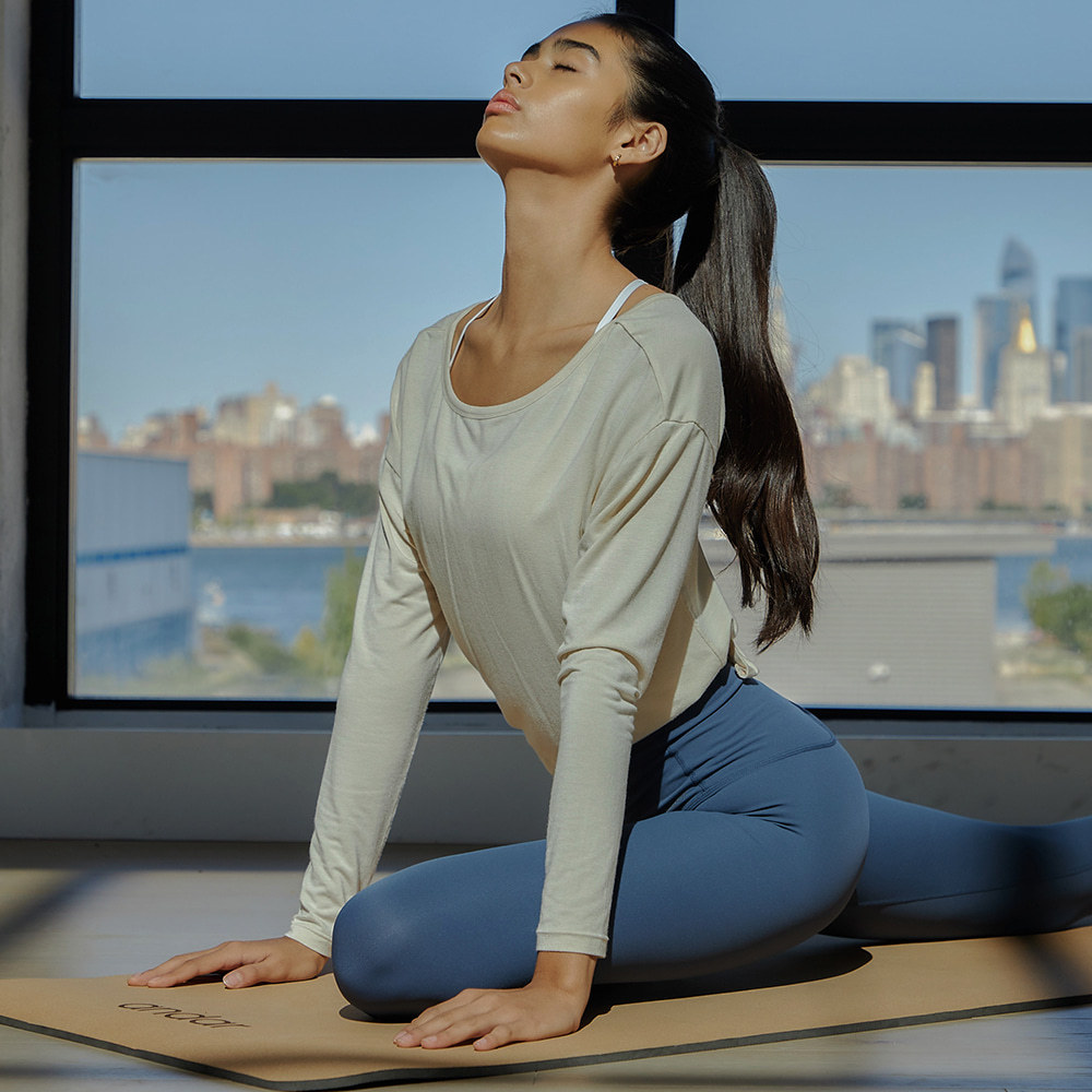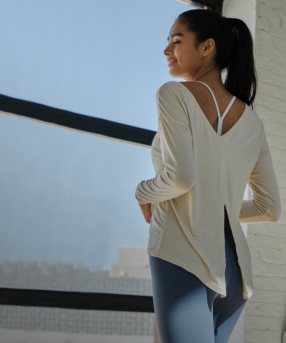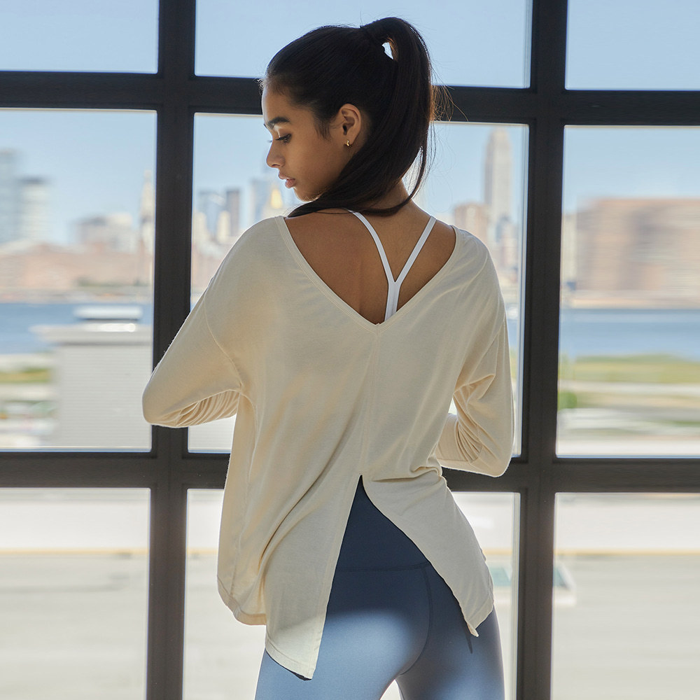 봄용 노출방지 요가 커버업, 흡습 발한 이중 착용 댄스 피트니스복 여성용, 자외선 차단 통기성 스포츠 상의스토어 가기