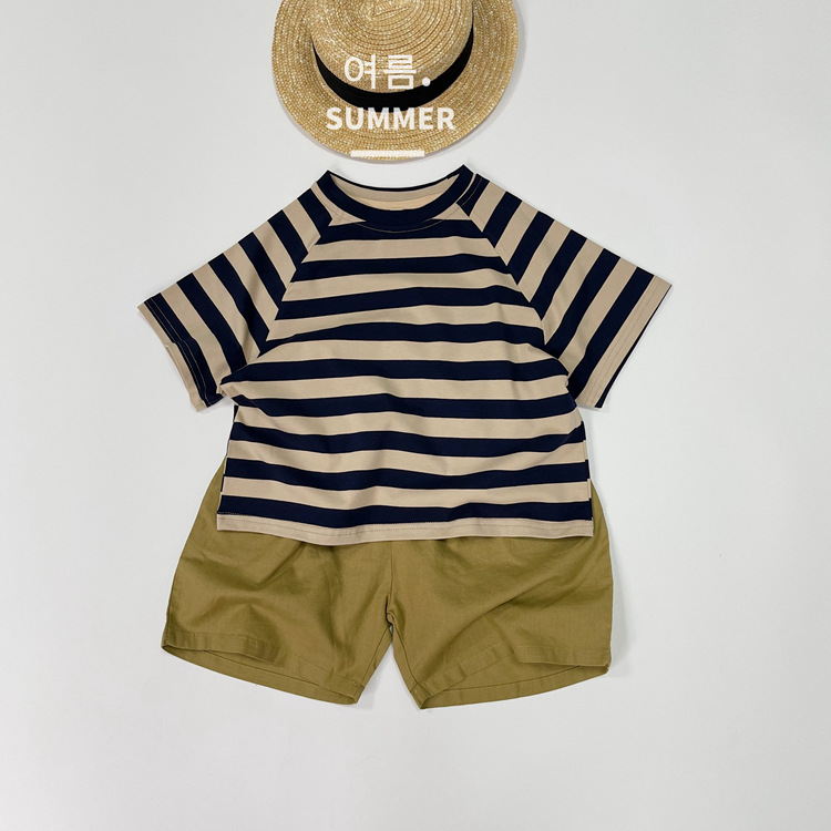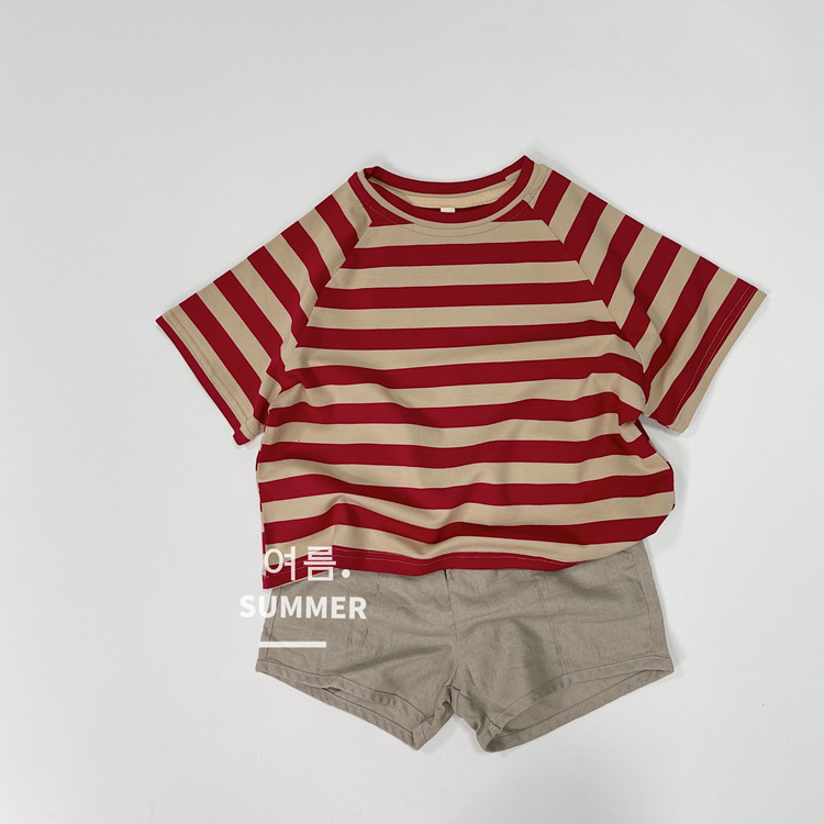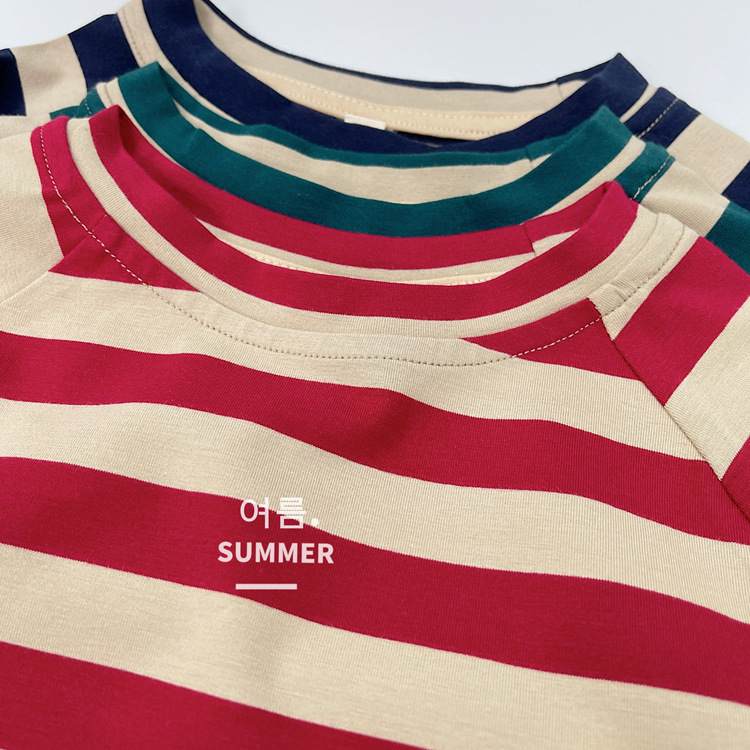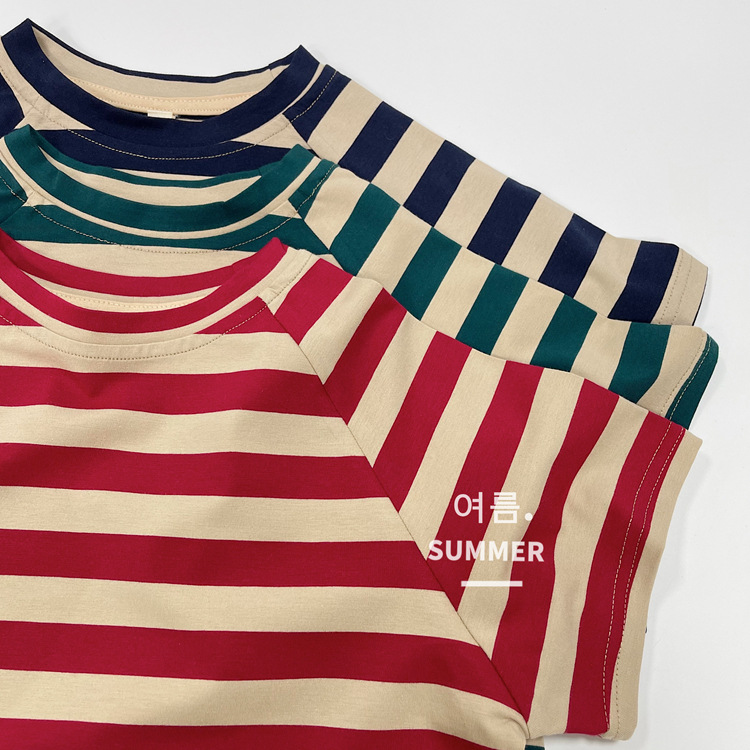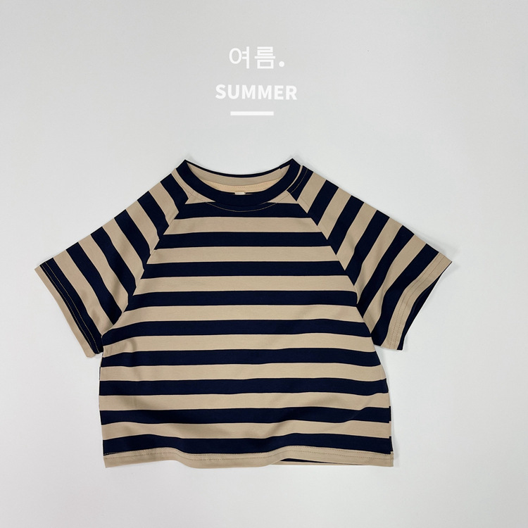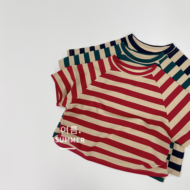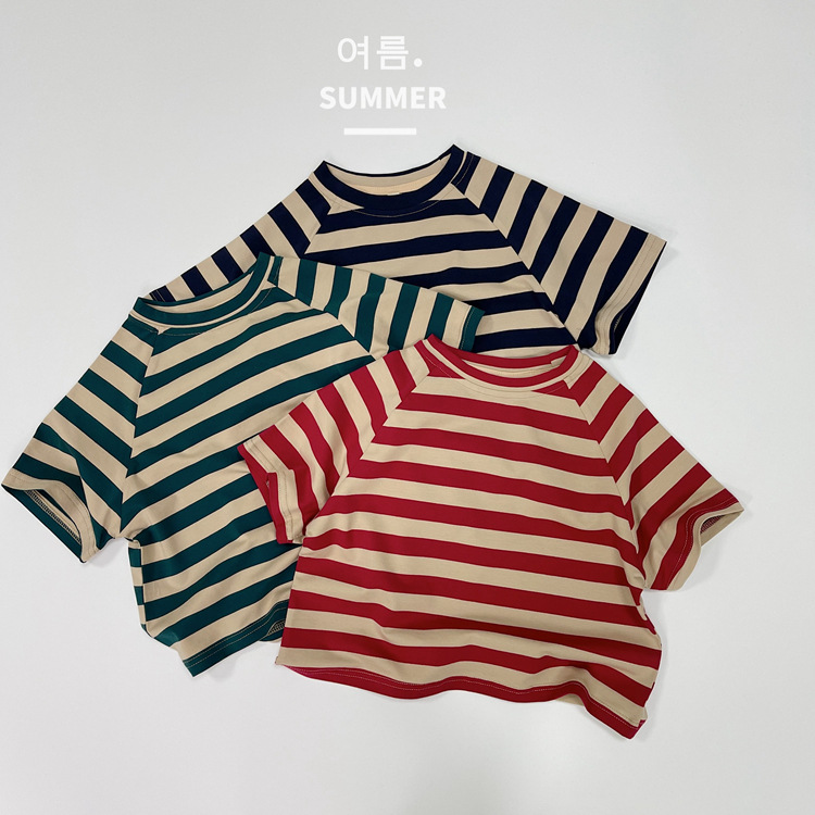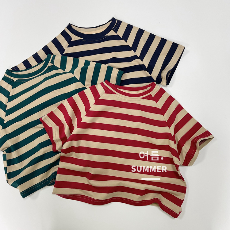한국 스타일 어린이 줄무늬 반팔 티셔츠 여름 새 스타일 남성과 여성 베이비 스타일 캐주얼 반팔 바닥 셔츠 탑스토어 가기