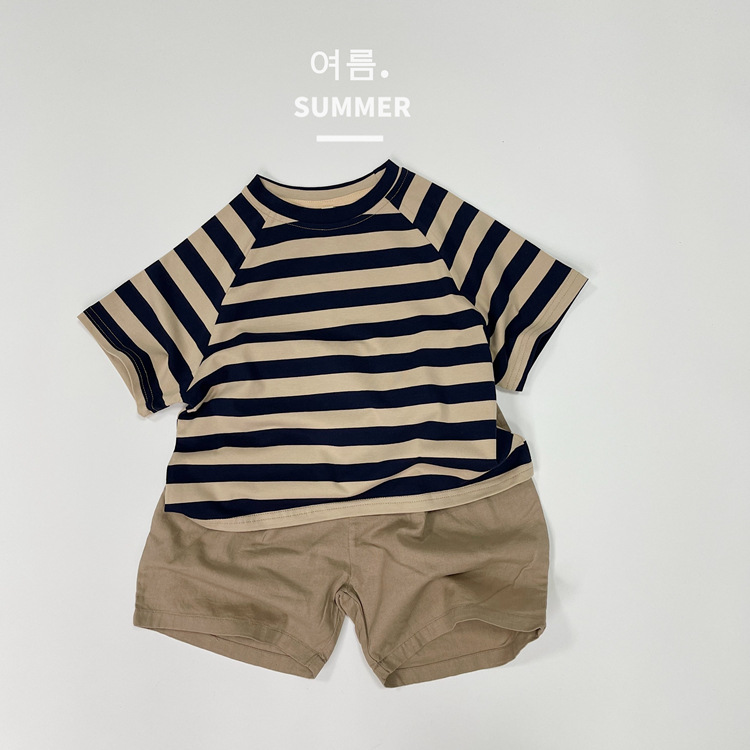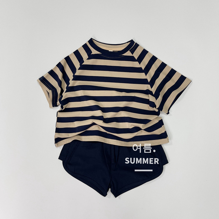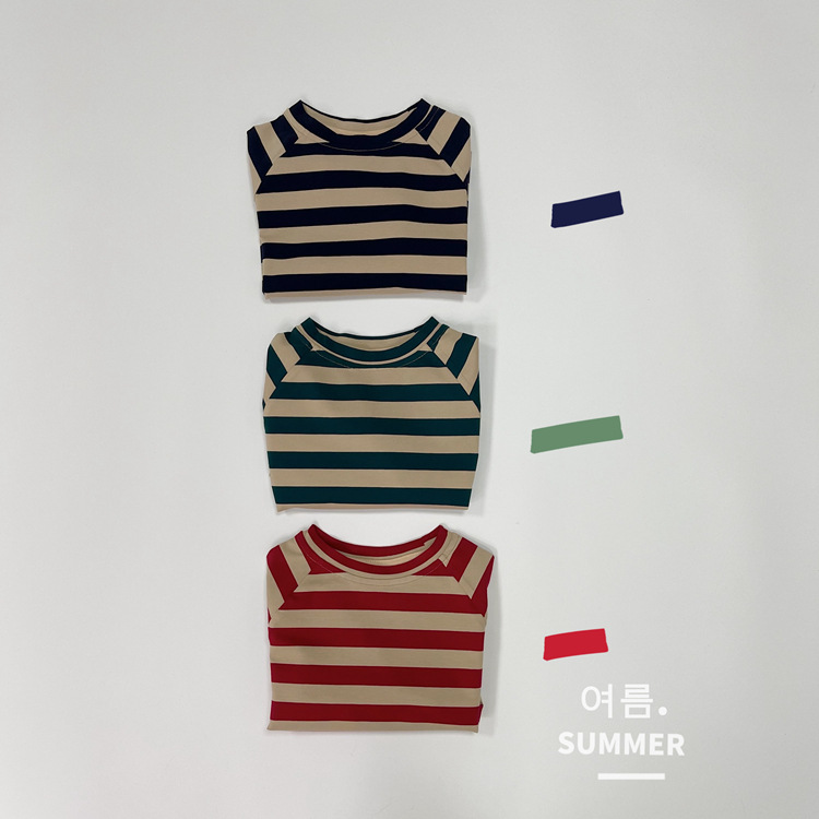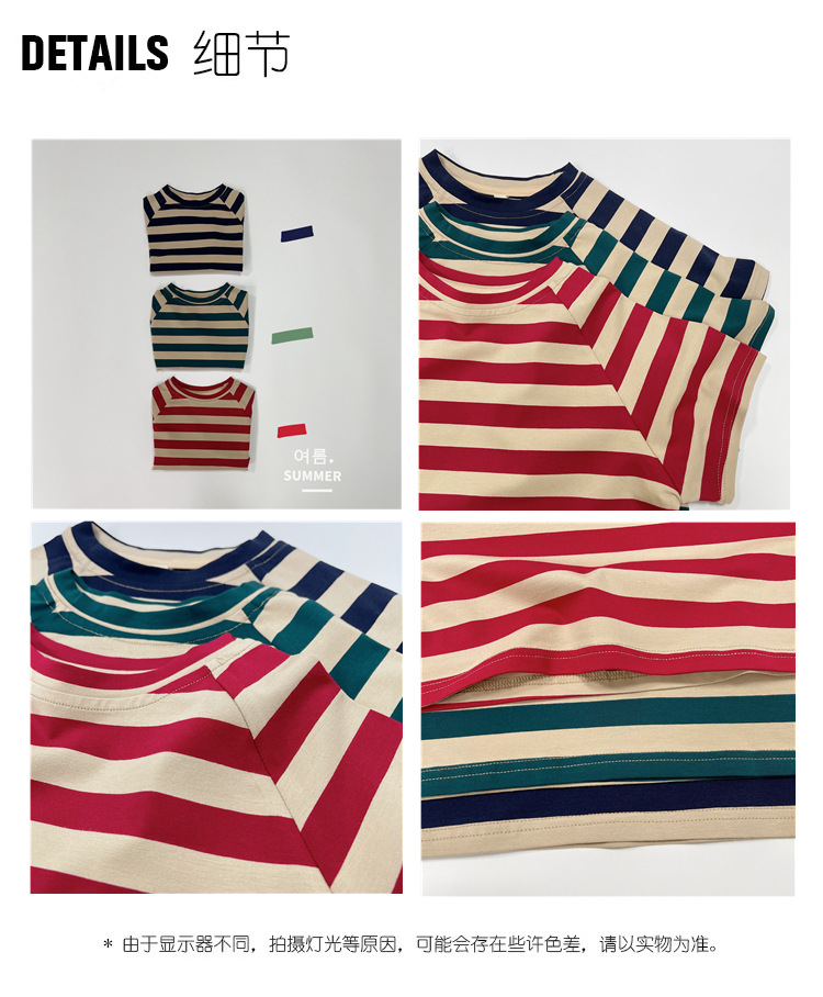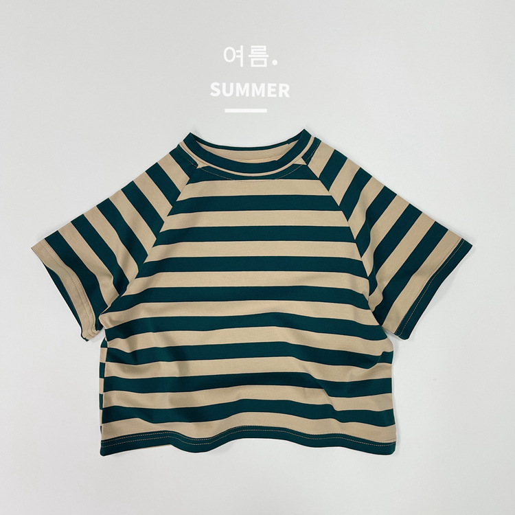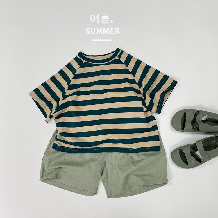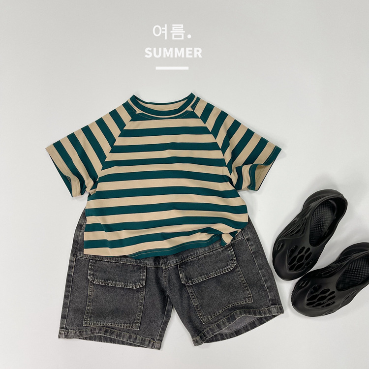 한국 스타일 어린이 줄무늬 반팔 티셔츠 여름 새 스타일 남성과 여성 베이비 스타일 캐주얼 반팔 바닥 셔츠 탑스토어 가기