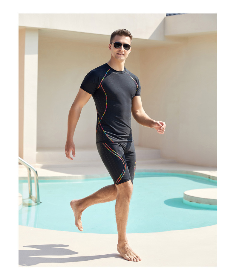 상어 피부 통기성 속건 반팔 5 점 바지 남성용 수영복 꽉 서핑 다이빙 세트 뚱뚱한 플러스 사이즈스토어 가기