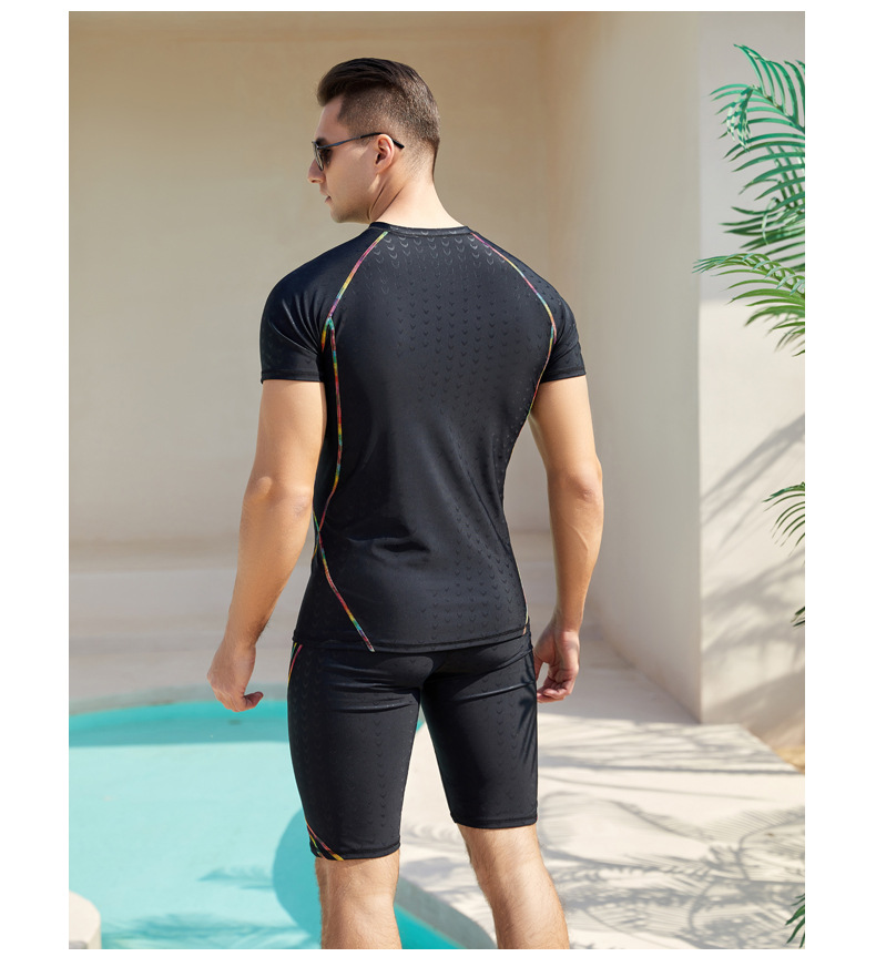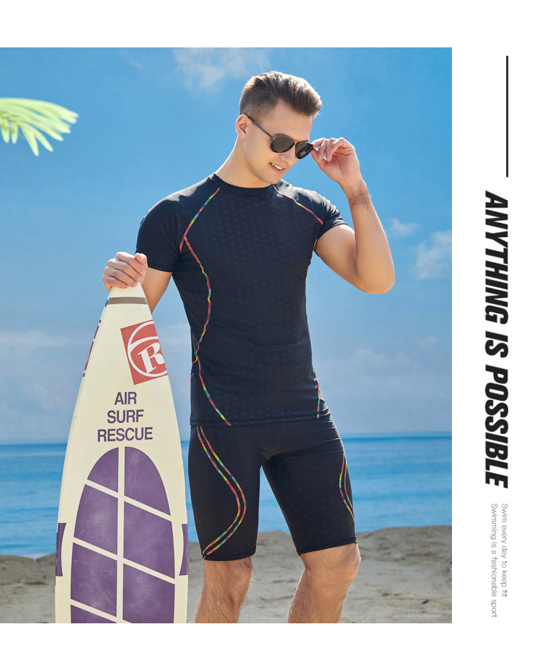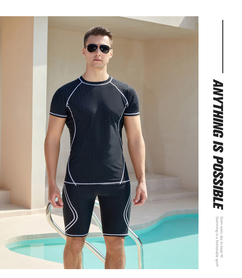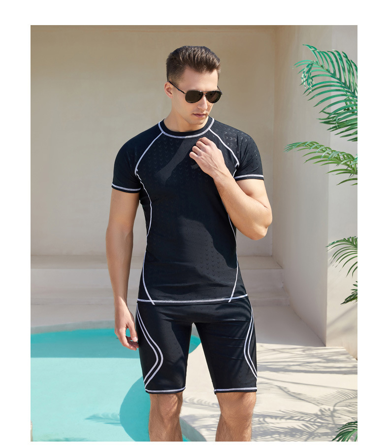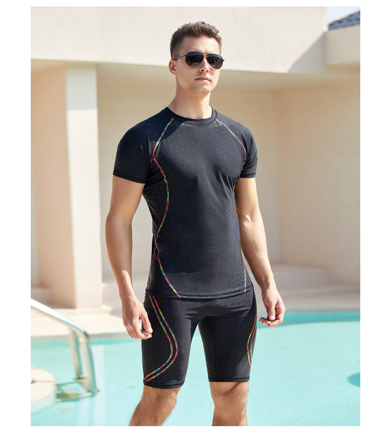 상어 피부 통기성 속건 반팔 5 점 바지 남성용 수영복 꽉 서핑 다이빙 세트 뚱뚱한 플러스 사이즈