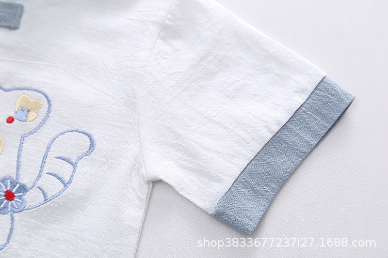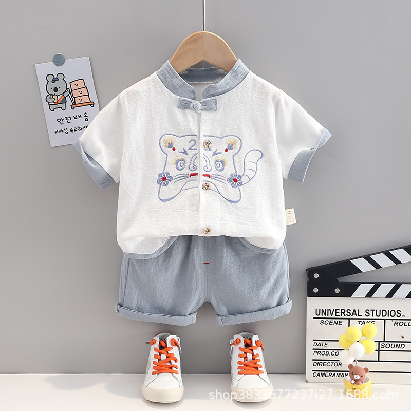소년과 소녀 당나라 세트 반팔 세트 여름 아기 린넨 중국 스타일 반팔 빈티지 어린이 Hanfu 투피스 세트스토어 가기