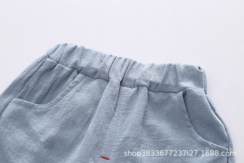 소년과 소녀 당나라 세트 반팔 세트 여름 아기 린넨 중국 스타일 반팔 빈티지 어린이 Hanfu 투피스 세트