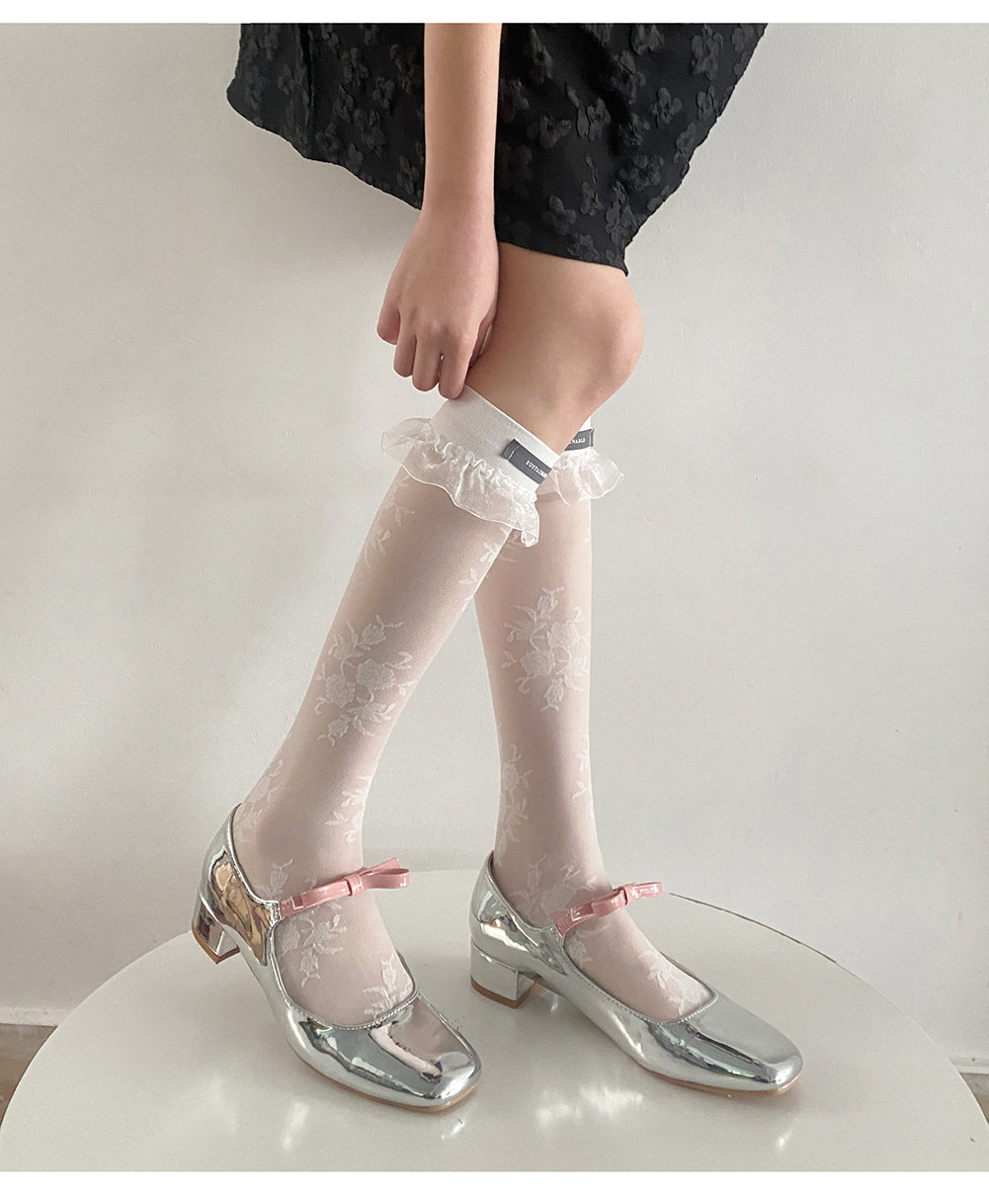 여름 조수 귀여운 달콤한 스타일 장미 꽃 얇은 통기성 더블 레이어 주름 영어 스타일 부드러운 소녀 공주 커프 양말