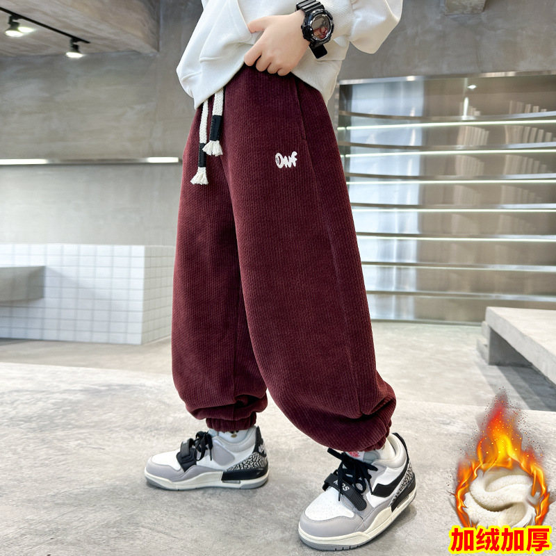아동복 2025 겨울 신상 남아용 기모 바지 중대형 아동용 다용도 기모 스웨트팬츠 봄 가을 남아용 캐주얼 바지