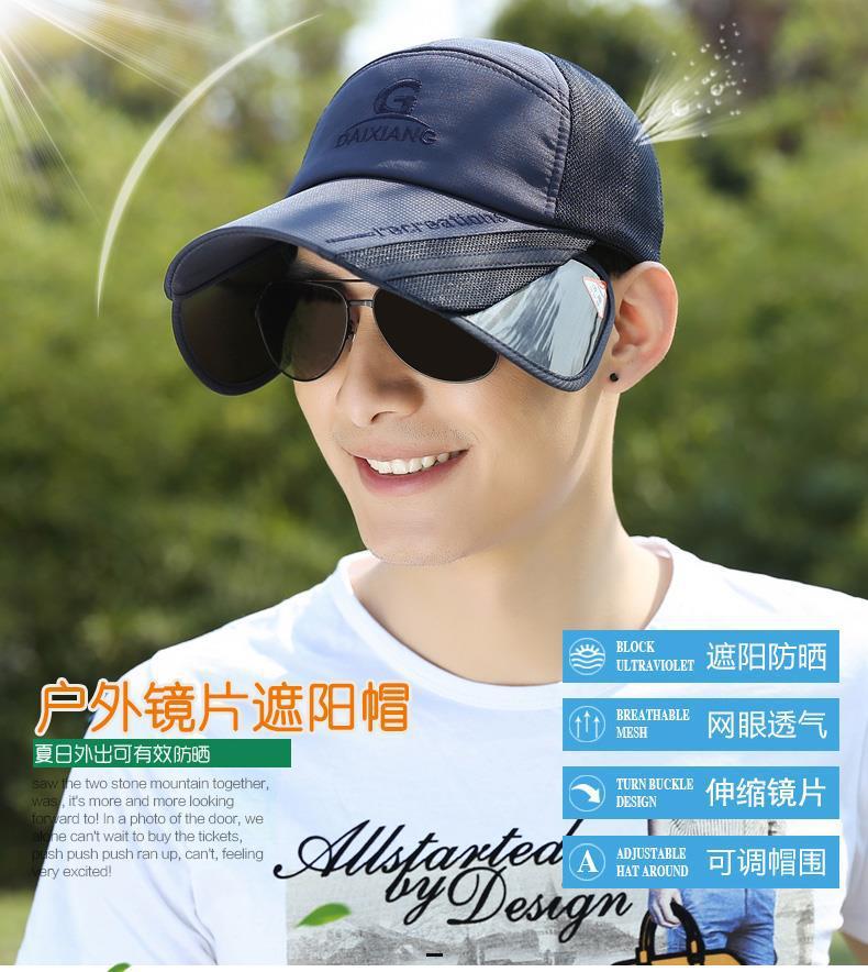 개폐식 렌즈 모자 남성용 여름 야구 모자 자외선 차단제 태양 모자 야외 모자 여성용 승마 모자 태양 모자
