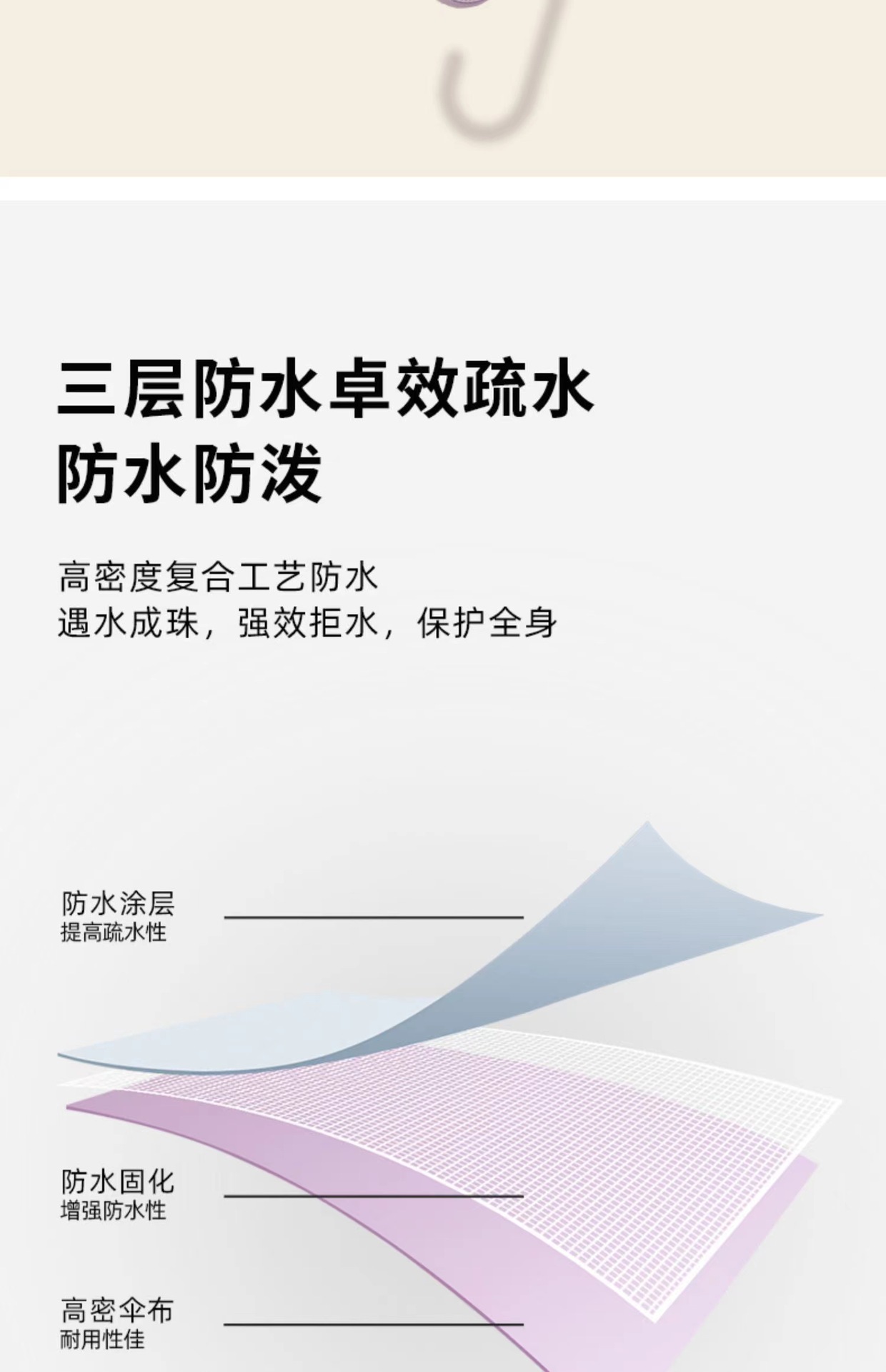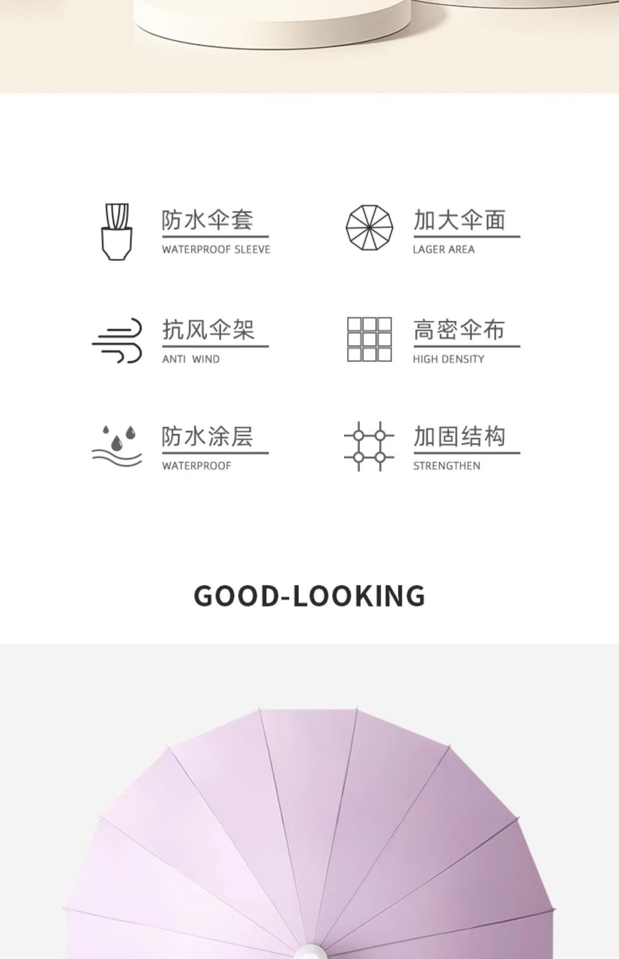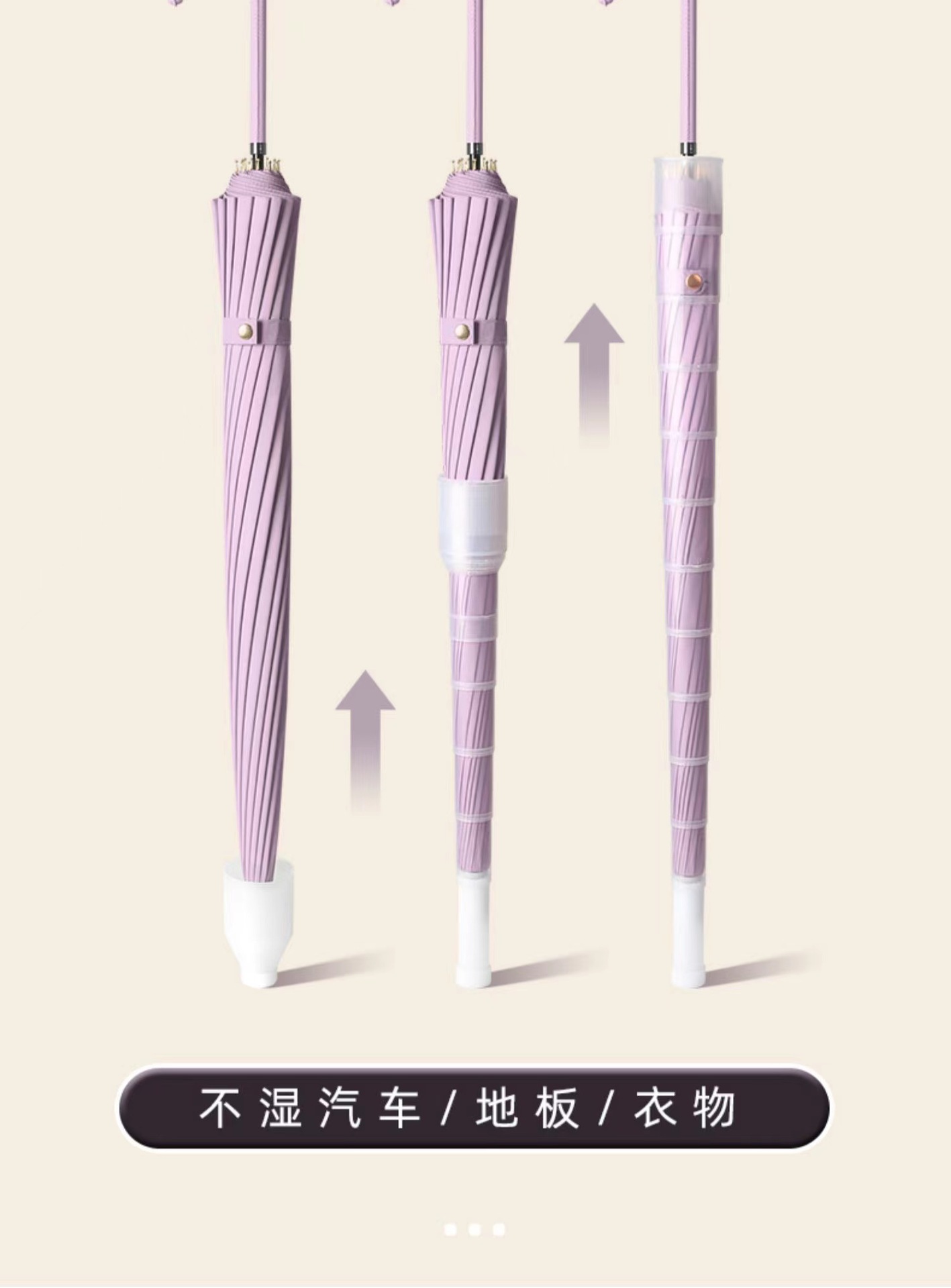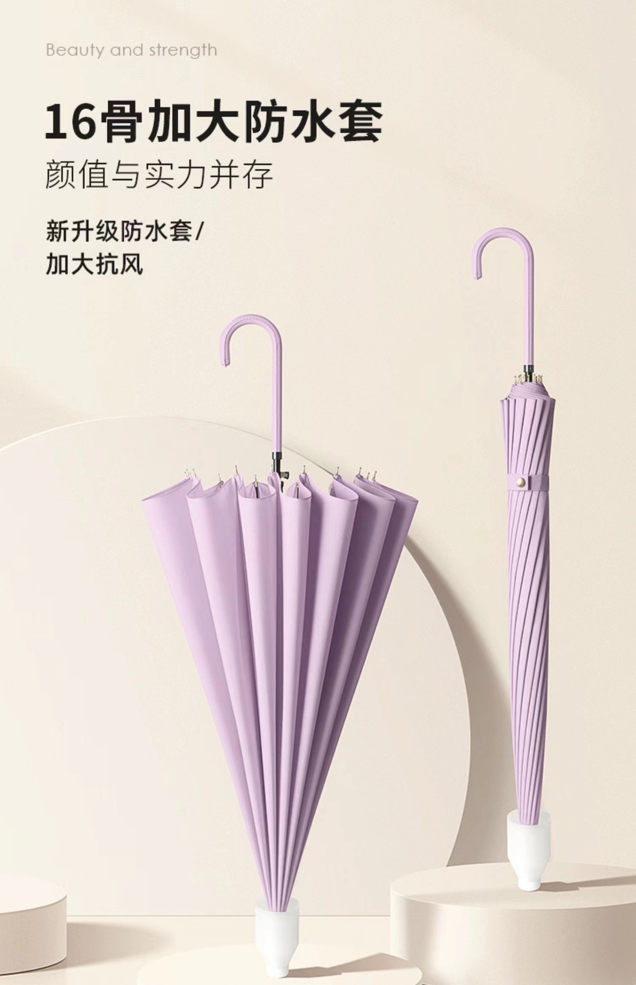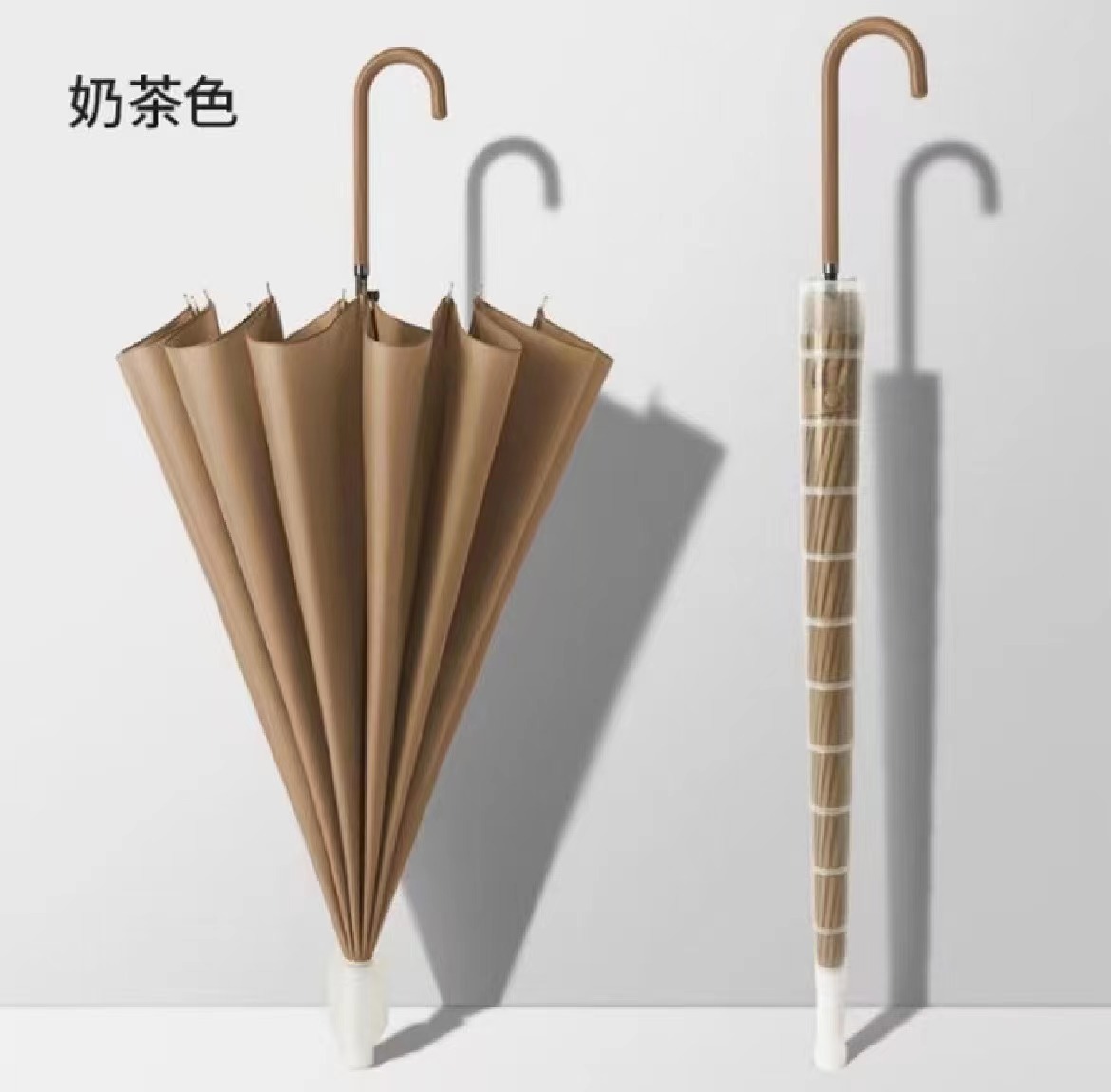 • [긴 손잡이 우산] 방수 커버 16 뼈 피부 곡선 핸들-진한 베이지 [1-2 명]