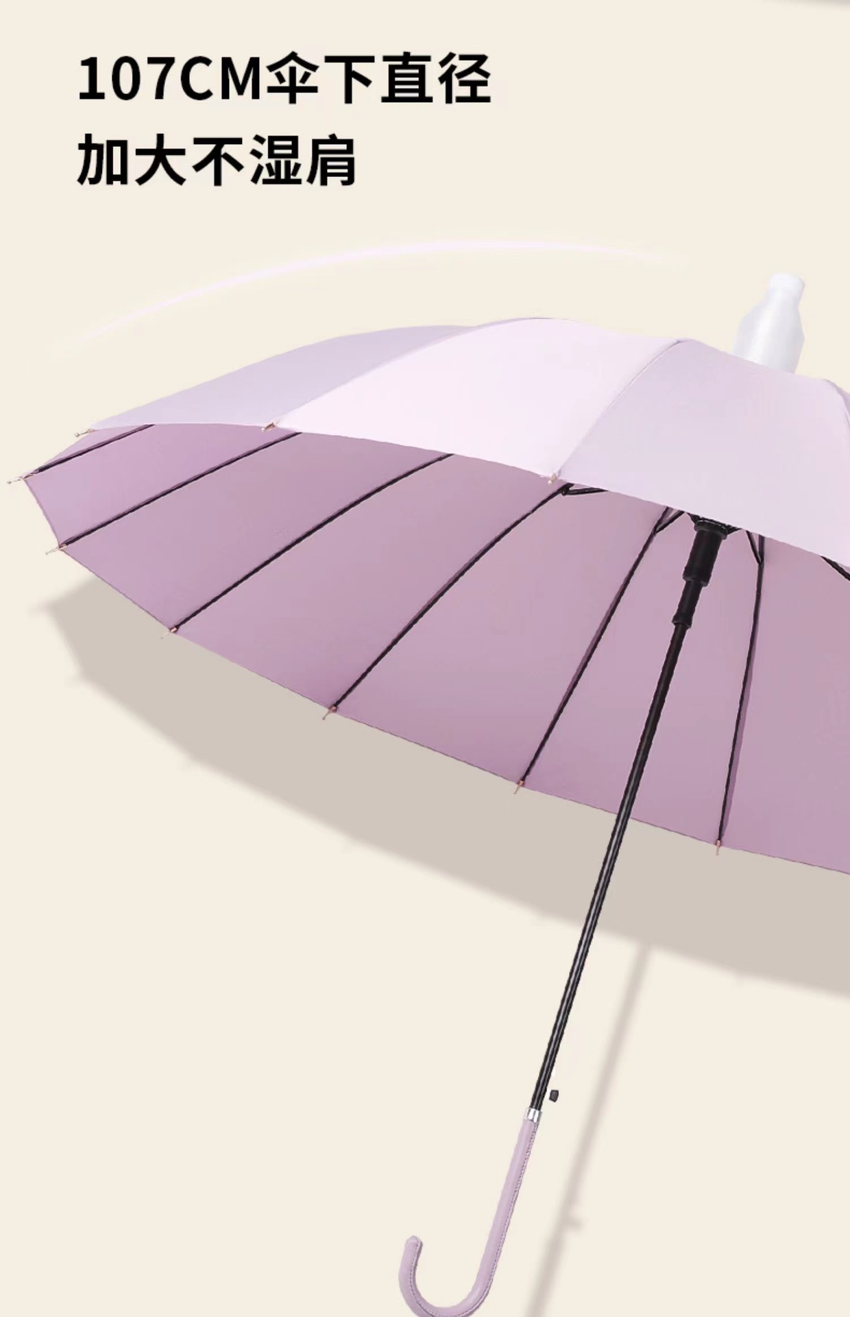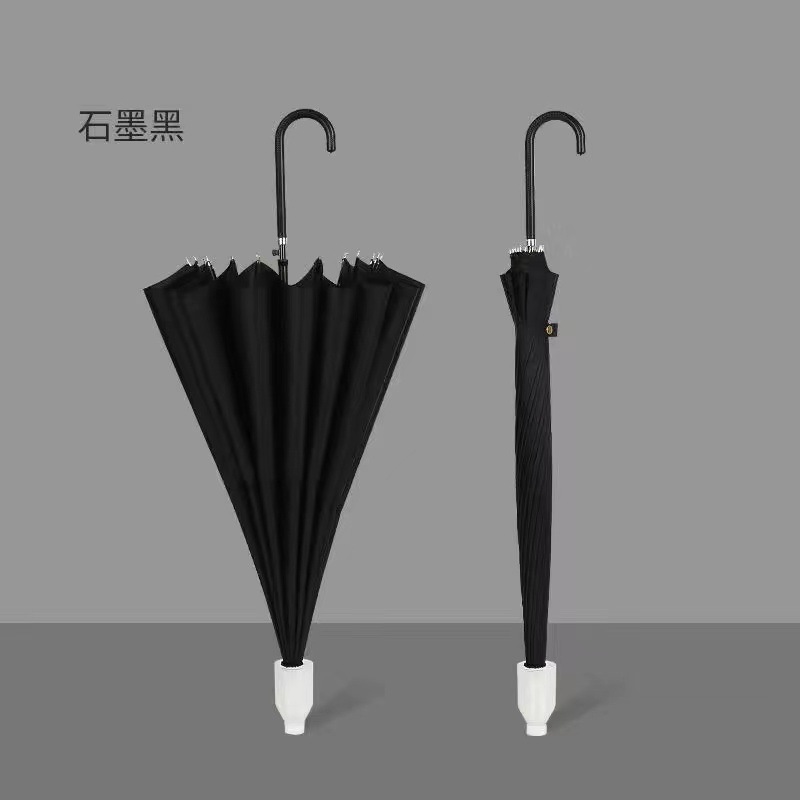 • [긴 손잡이 우산] 24 뼈 가죽 생핸들-블랙 메탈 우산 헤드-블랙 [2]