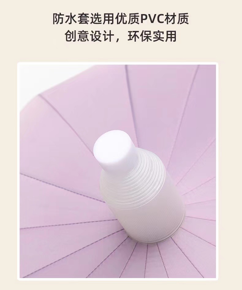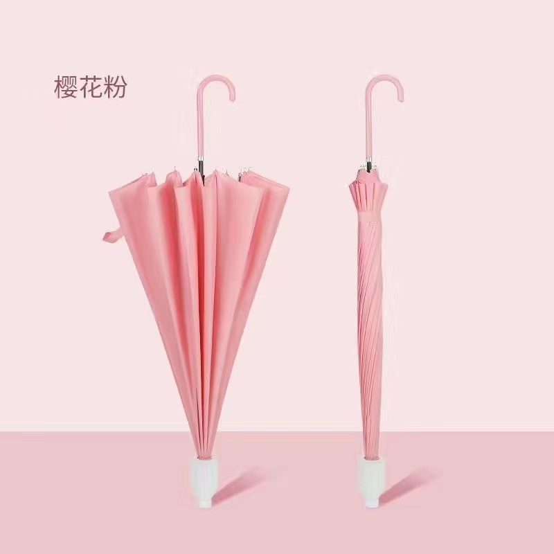 • [긴 손잡이 우산] 방수 커버 16 뼈 피부 곡선 핸들-핑크-[1-2 명]