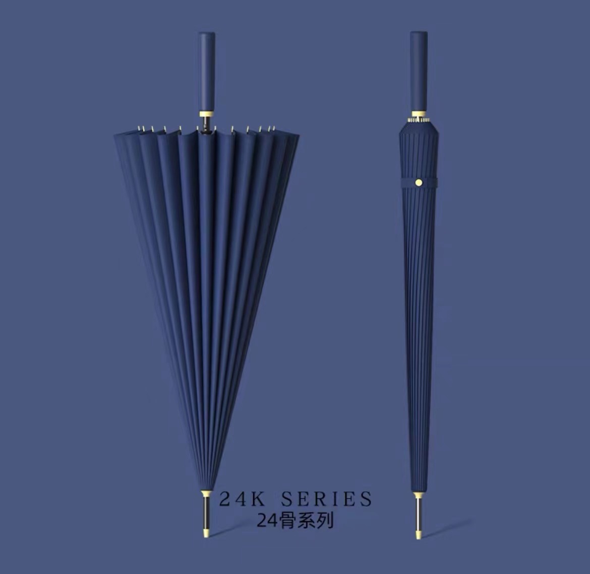 • [긴 손잡이 우산] 24 뼈 피부 스트레이트 핸들-블랙 메탈 우산 헤드-네이비 [2]