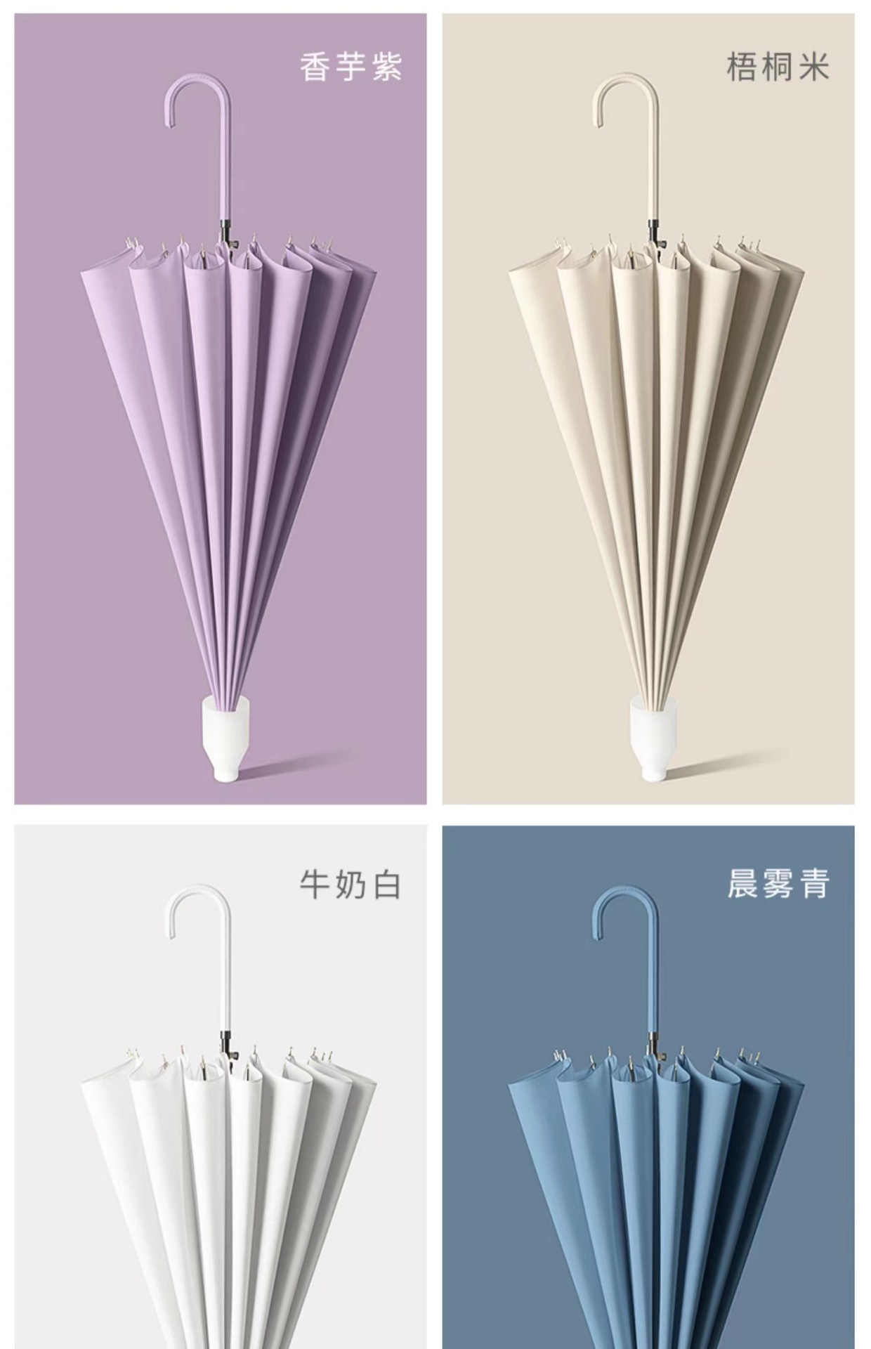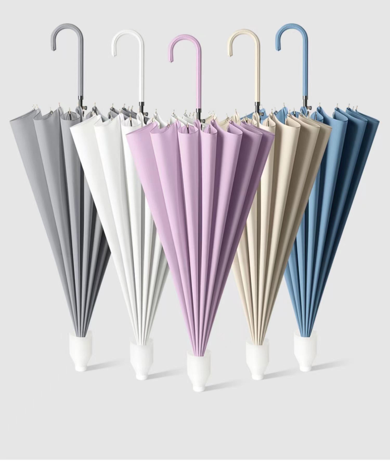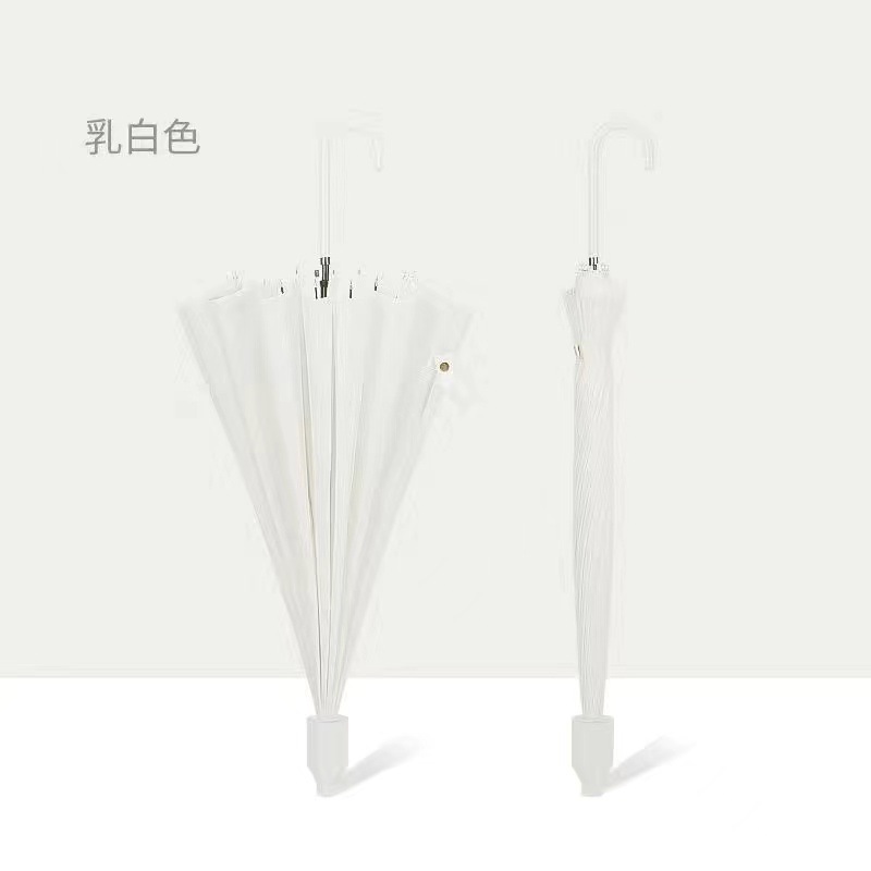 • [긴 손잡이 우산] 방수 커버 16 뼈 피부 커브드 핸들-화이트 [1-2 분]]