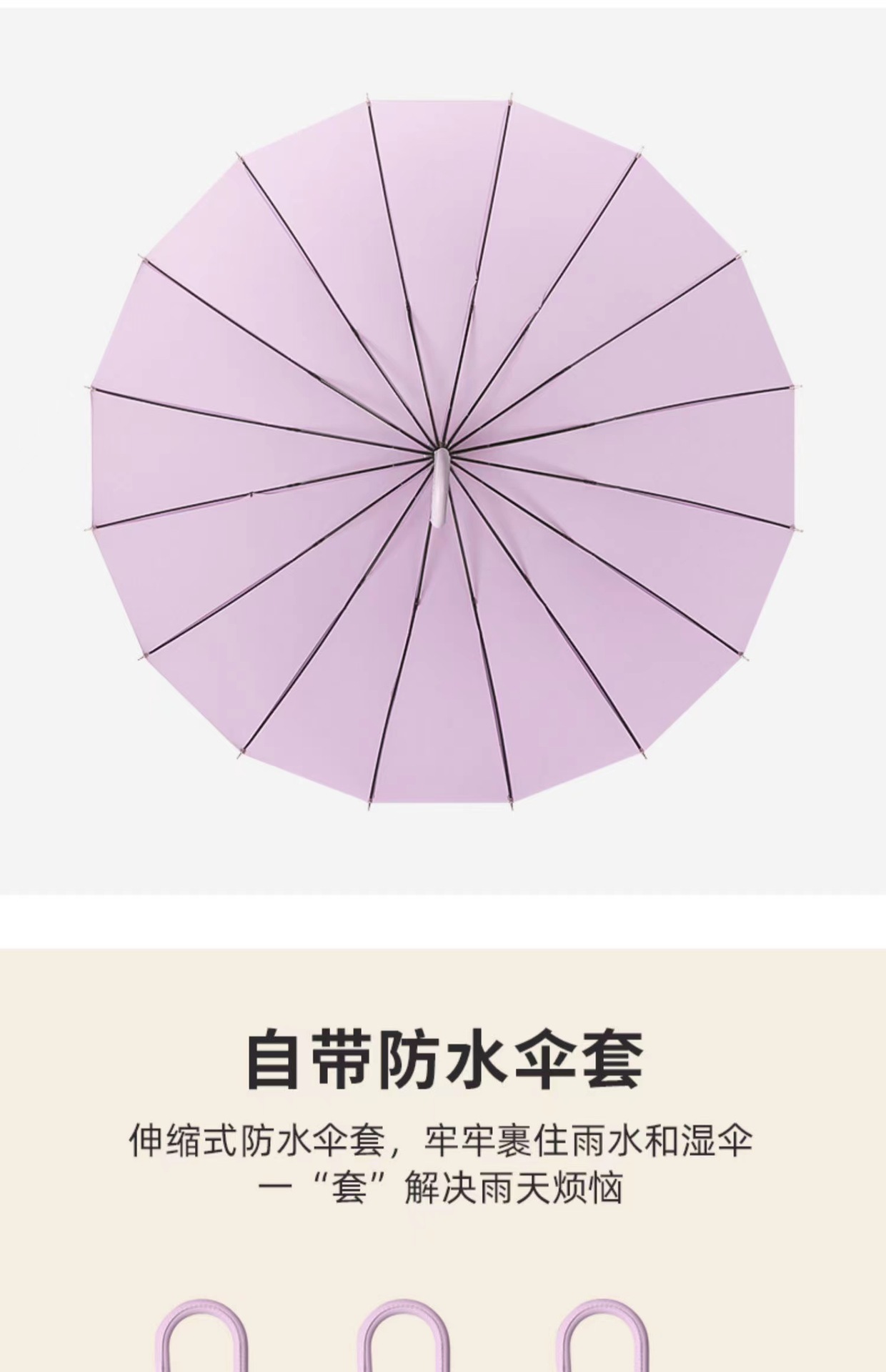 • [긴 손잡이 우산] 방수 커버 16 뼈 피부 곡선 핸들-오르간 퍼플-[1-2 명]