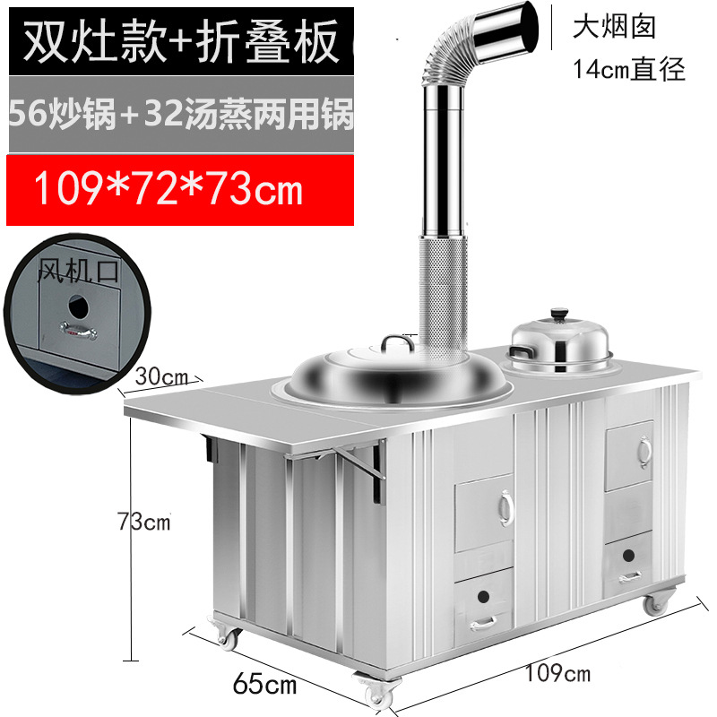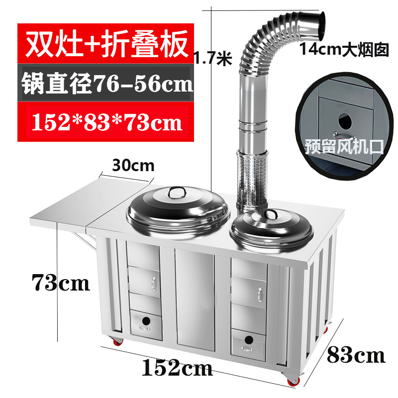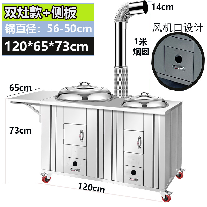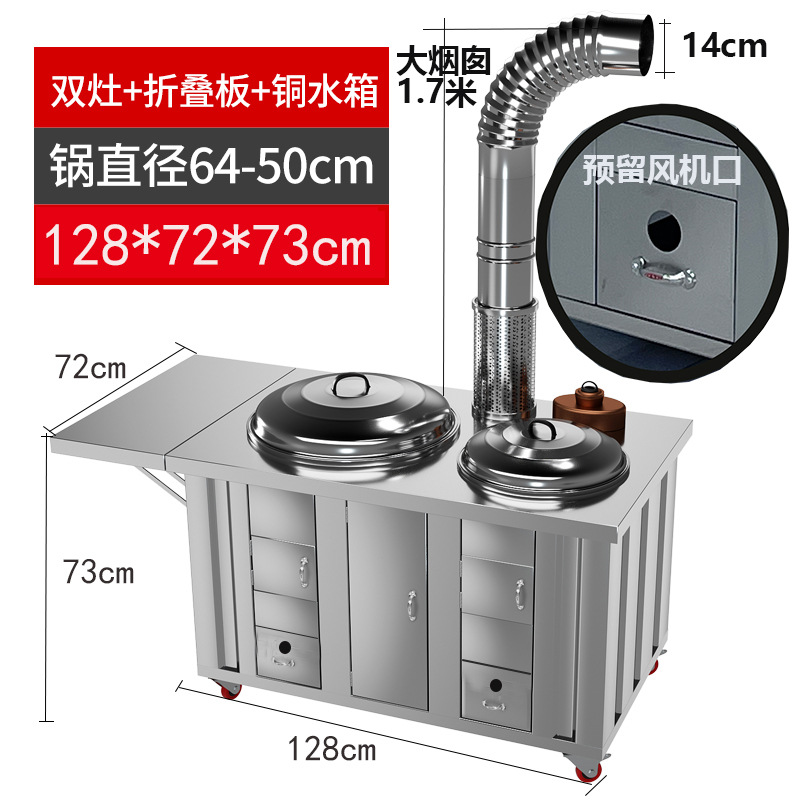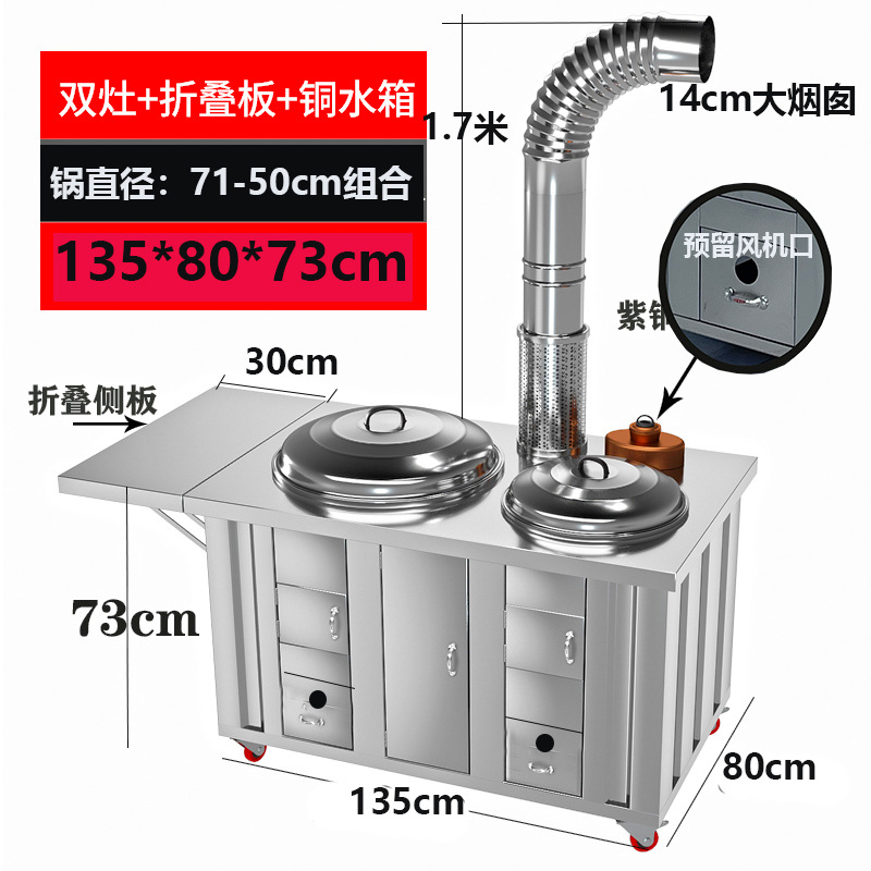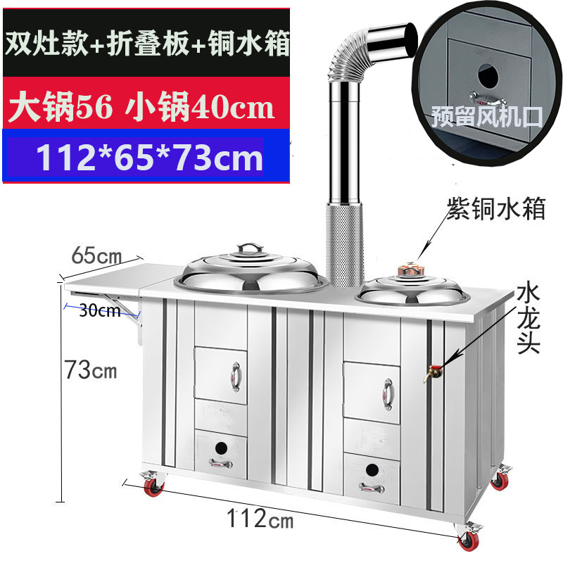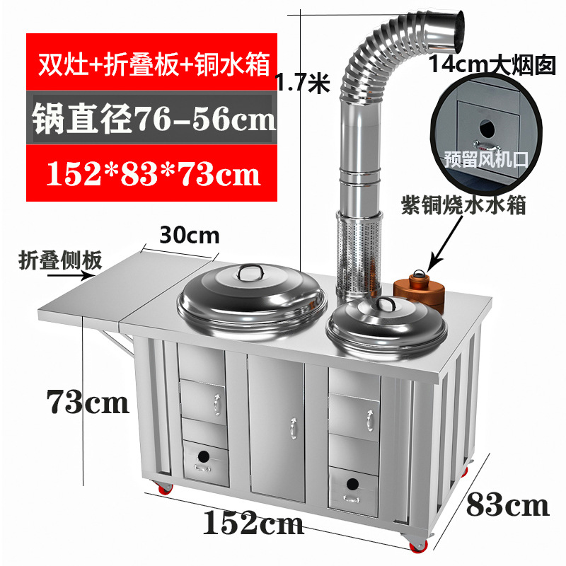 • 더블 스토브 모델: 76-56cm 웍 + 측면 패널 + 구리 물 탱크(14cm 대형 굴뚝은 화력이 높고 연기가 돌아오지 않음)
