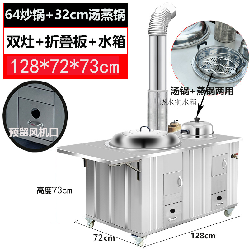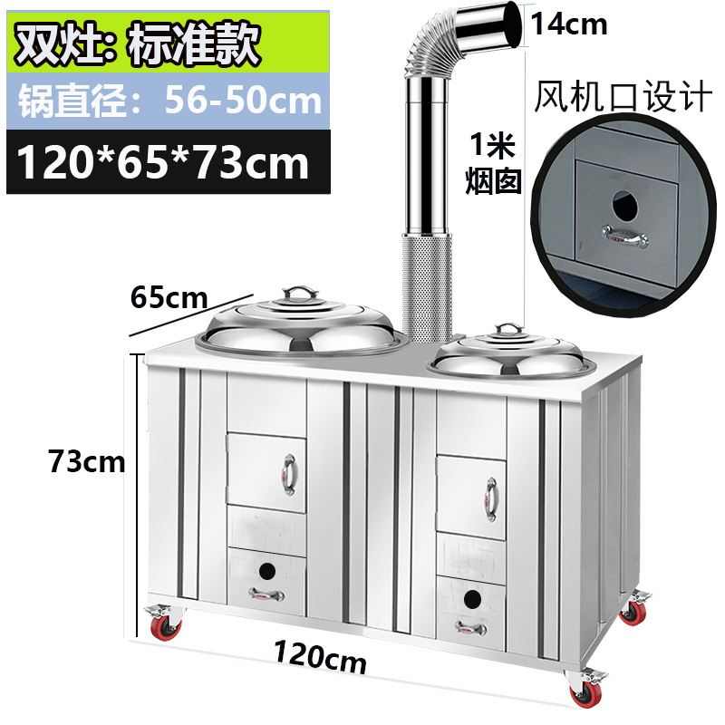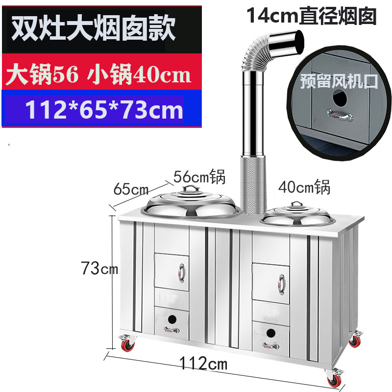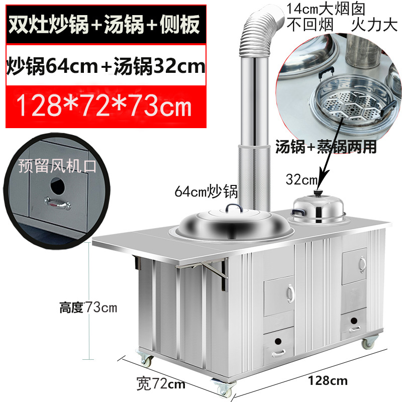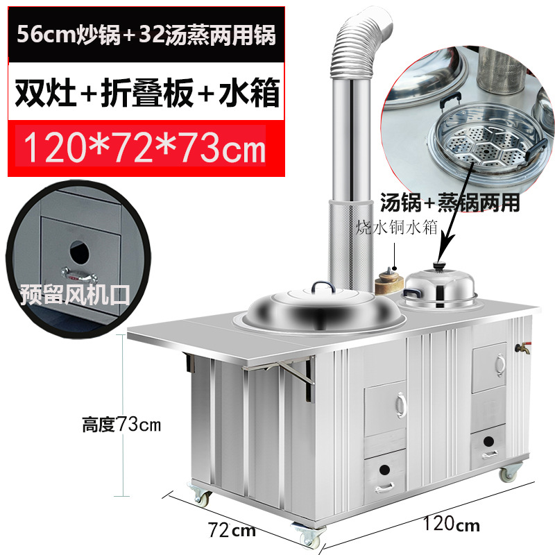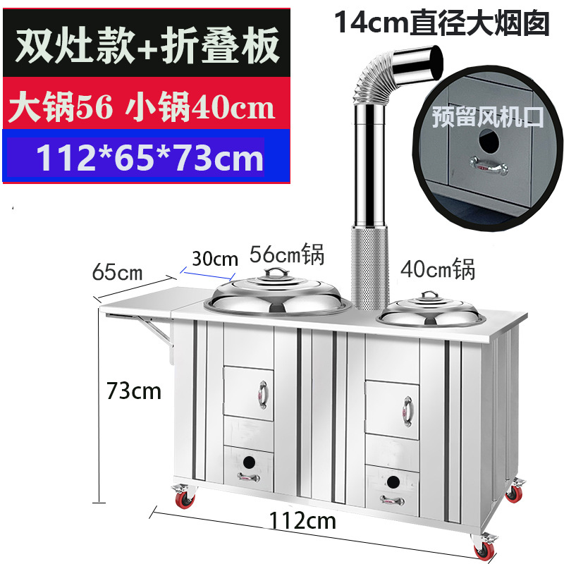 • 더블 스토브 모델: 76-56cm 웍 + 측면 패널 + 구리 물 탱크(14cm 대형 굴뚝은 화력이 높고 연기가 돌아오지 않음)