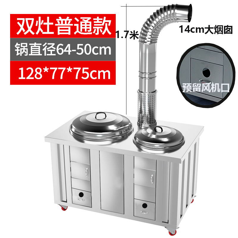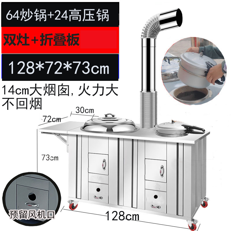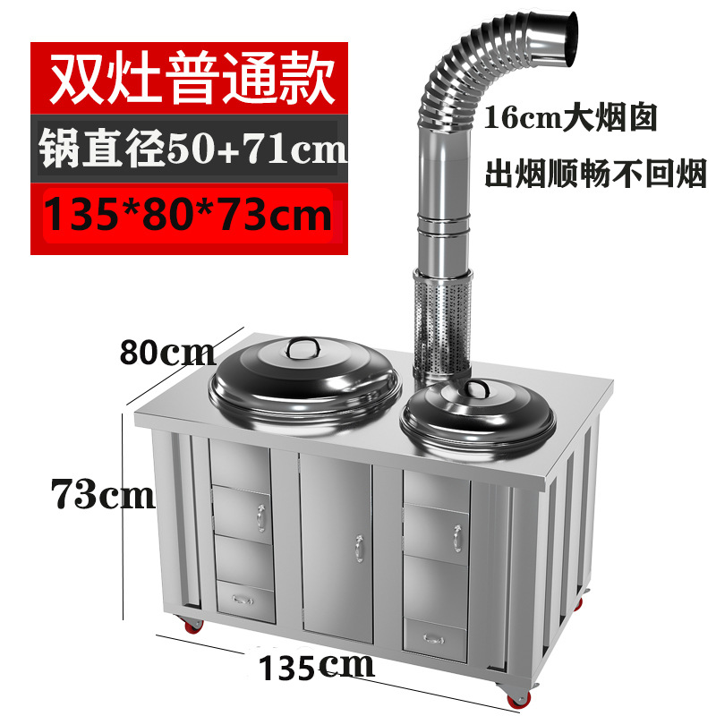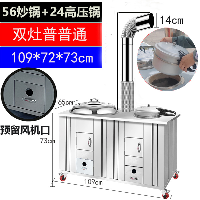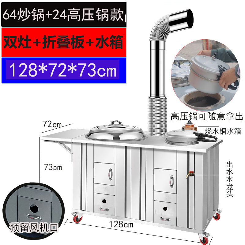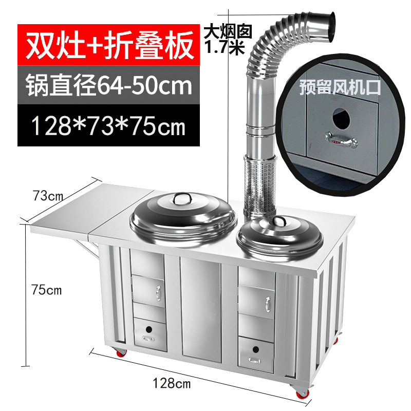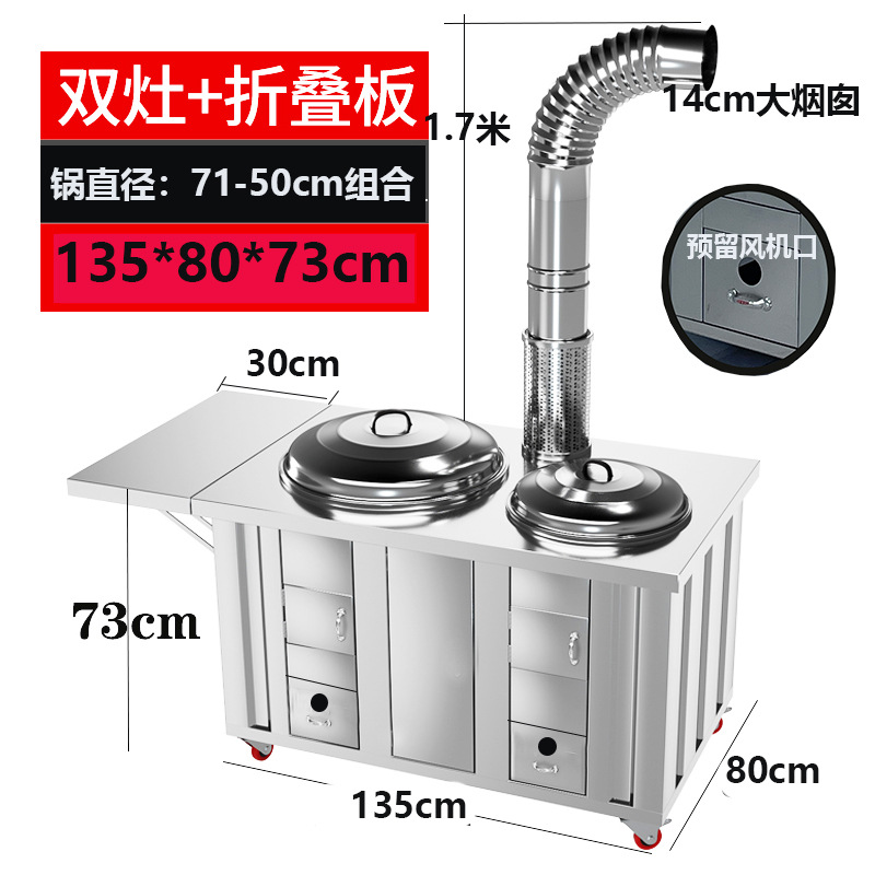 • 더블 스토브 모델: 76-56cm 웍 + 측면 패널 + 구리 물 탱크(14cm 대형 굴뚝은 화력이 높고 연기가 돌아오지 않음)