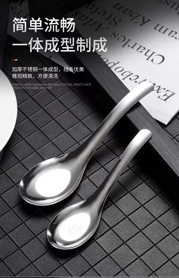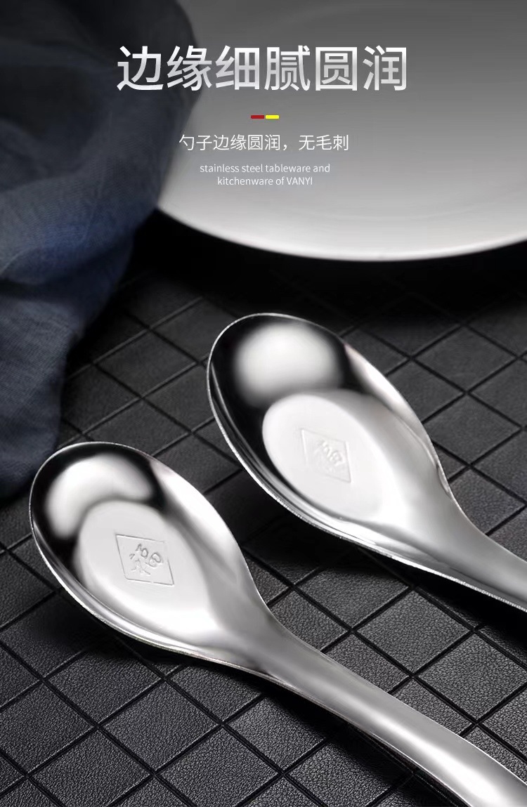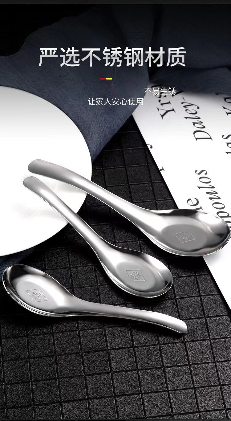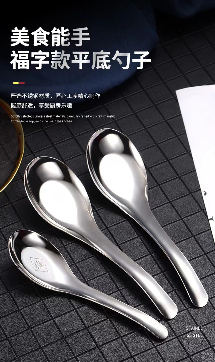 스테인레스 스틸 퍼지 스푼 중국 스타일 플랫 바닥 두꺼운 가정용 성인 어린이 수프 스푼 믹싱 스푼 스프를 마시는 큰 스몰 사이즈스토어 가기