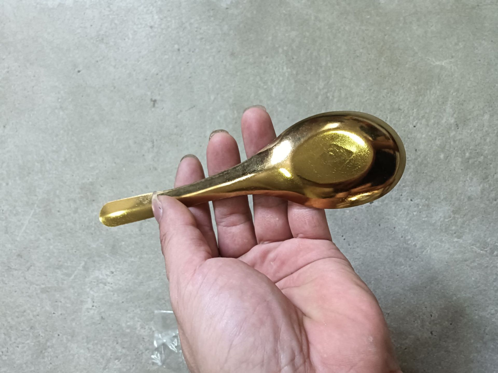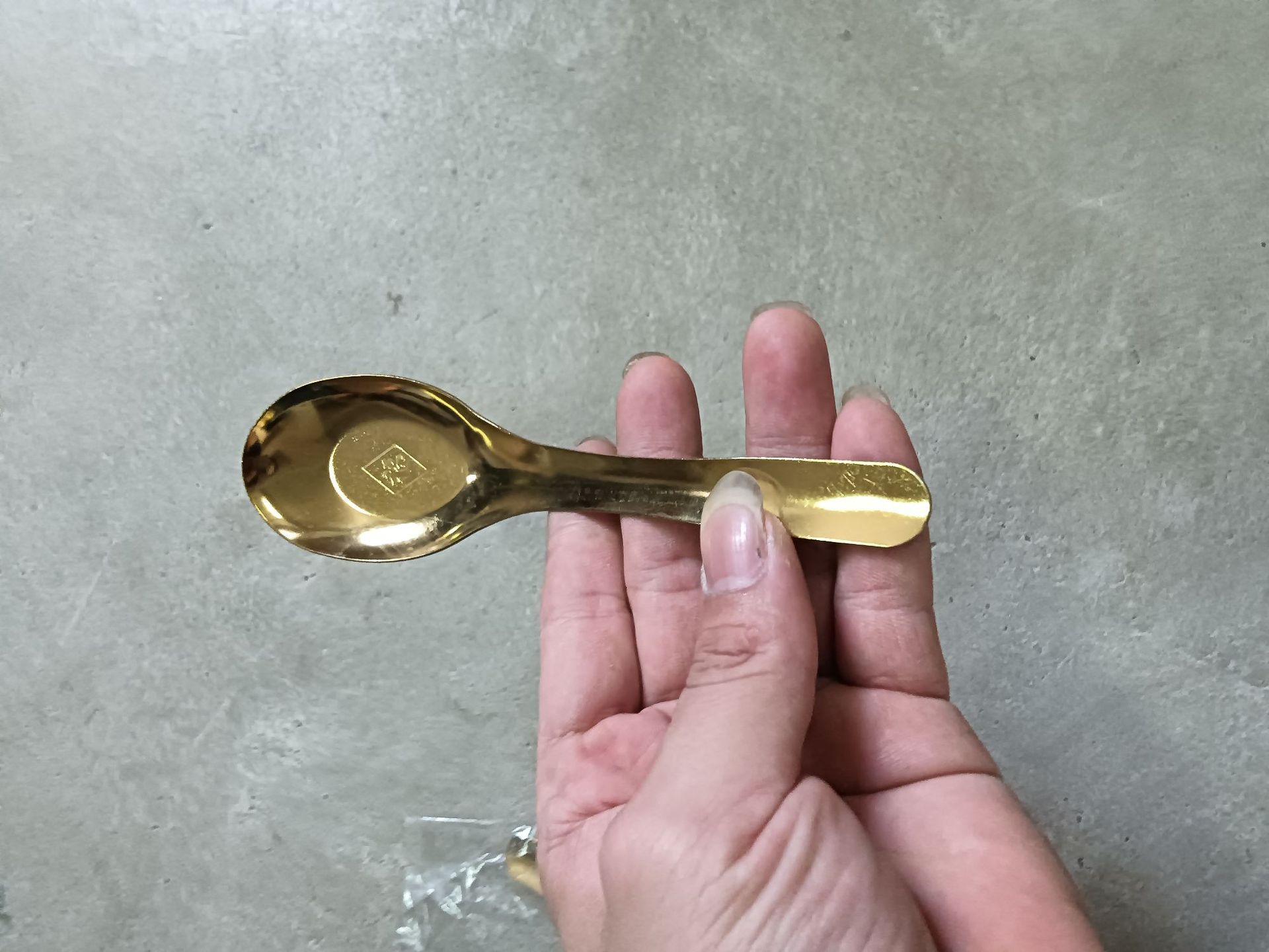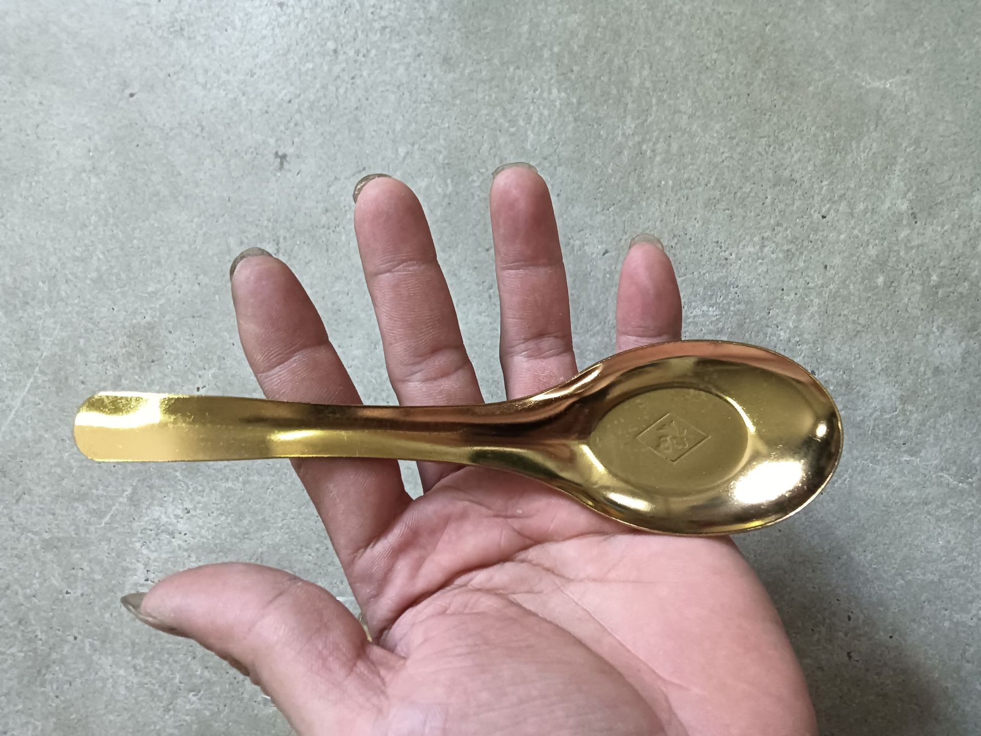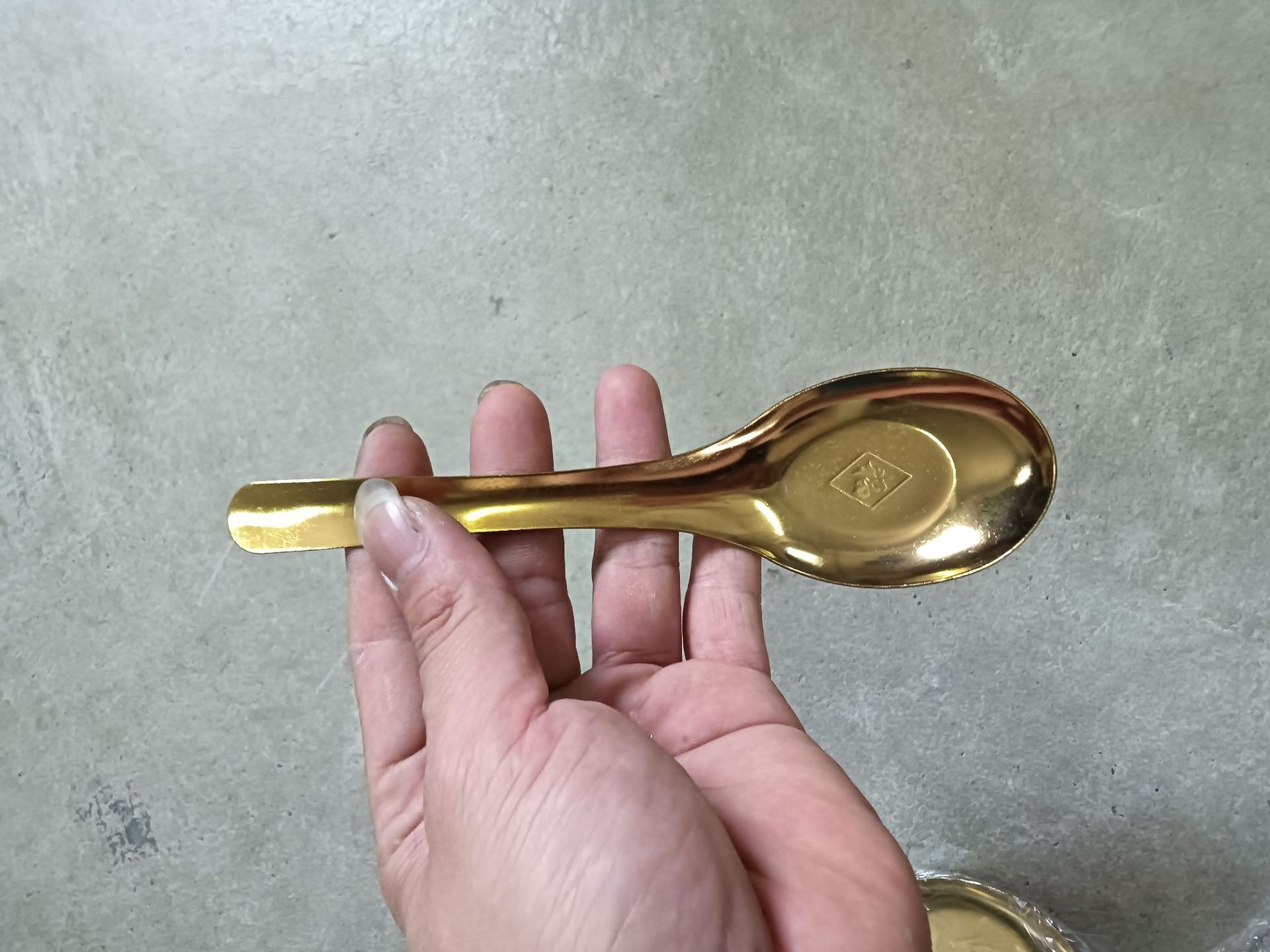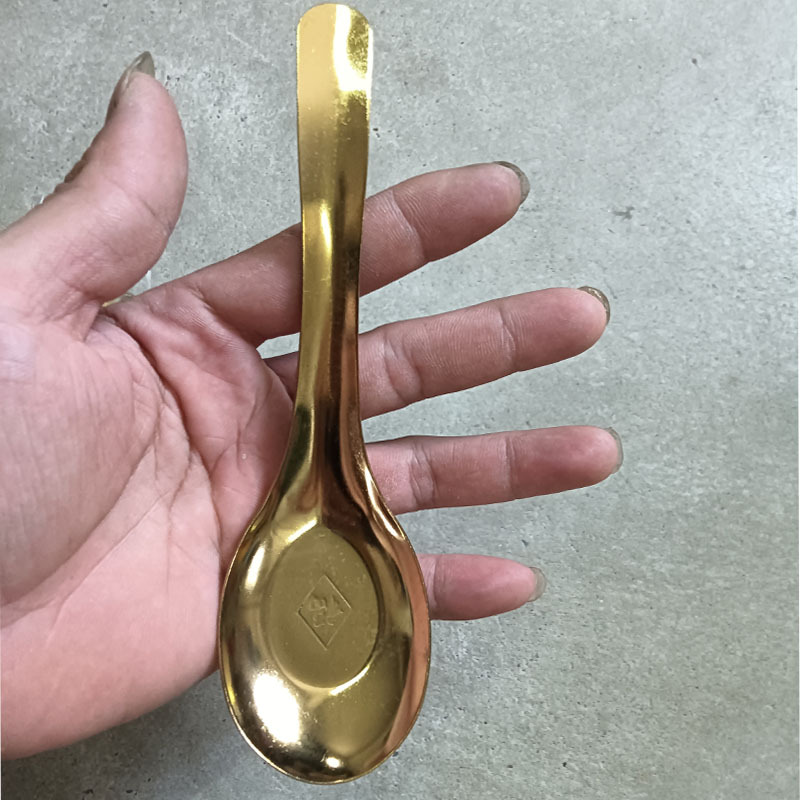 • "Fu"라는 단어가 적힌 황금색 대형 플랫 스푼