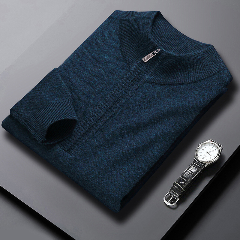 겨울 니트 스웨터 남자의 2021 신상품 스웨터 유행 한국 스타일 단색 두꺼운 하프 하이 넥 긴 소매 지퍼 스웨터 남성용