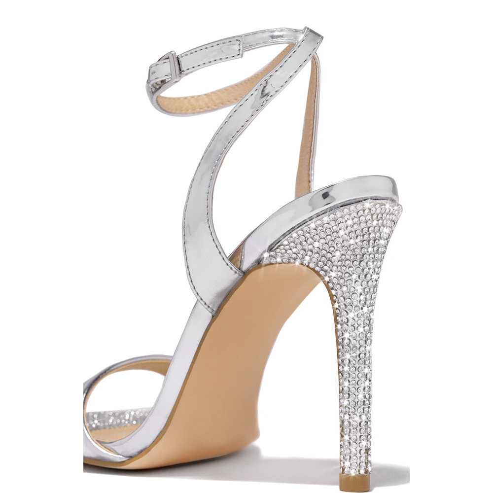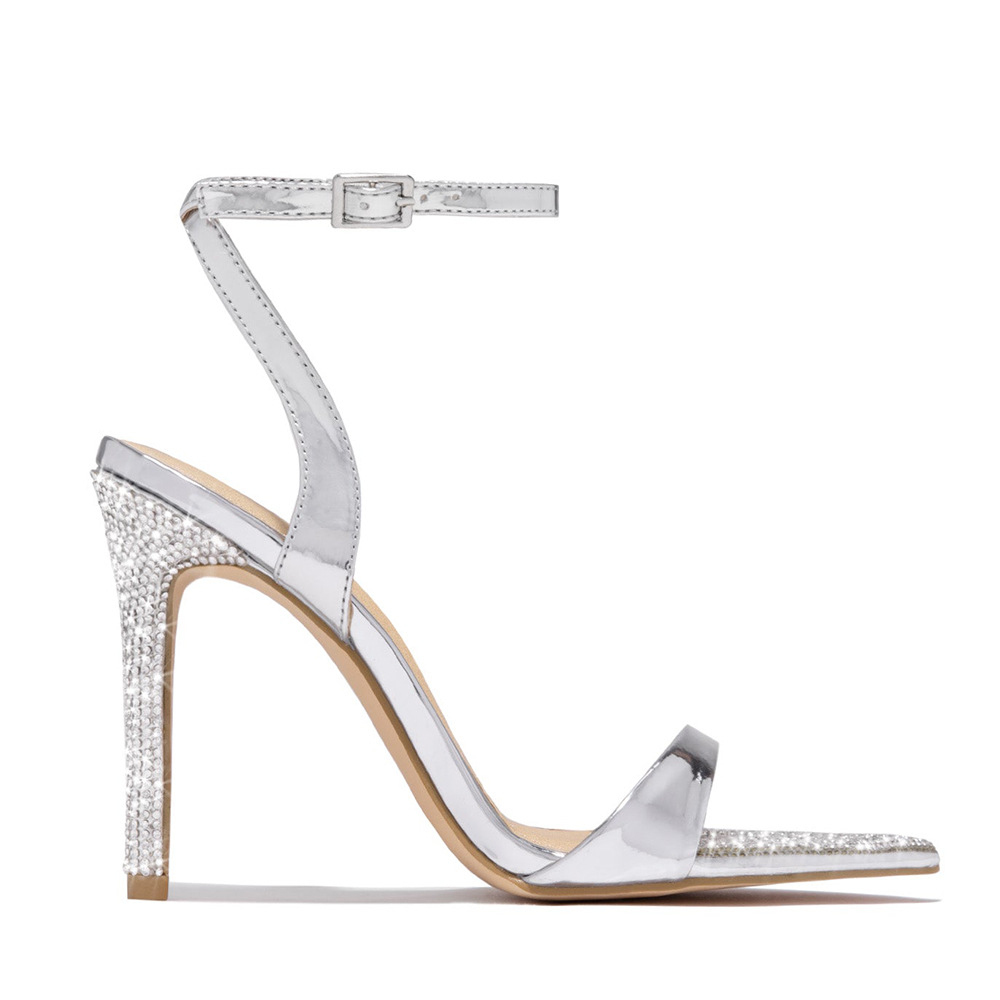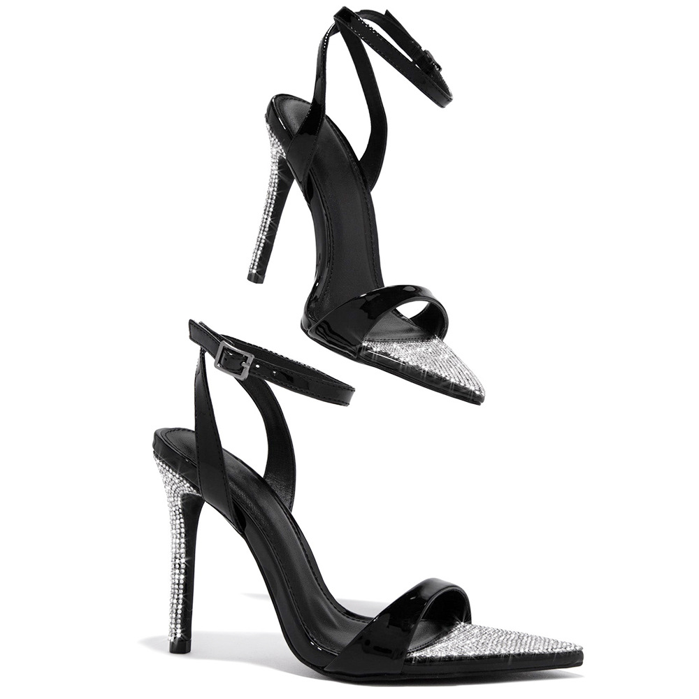 유럽과 미국 대외 무역 라인 석 얇은 뒤꿈치 버클이있는 여성을위한 뾰족한 하이힐 샌들 패션 샌들 힐 신발